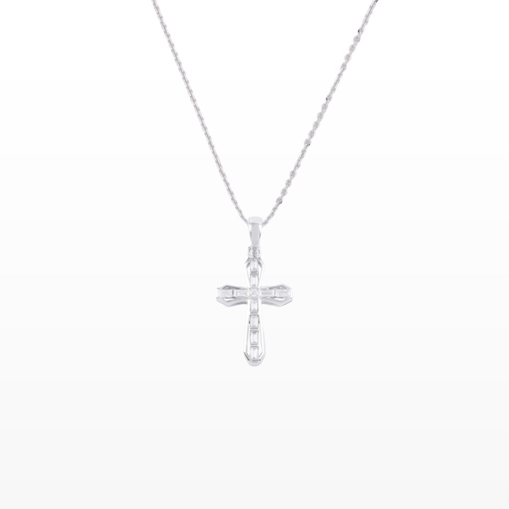 Thiết kế thánh giá được chế tác tinh xảo, đính kim cương dọc theo các đường nét tạo hiệu ứng lấp lánh nhẹ nhàng nhưng đầy cuốn hút. Không chỉ là món trang sức, đây còn là biểu tượng của niềm tin, sự bảo vệ và bình an.