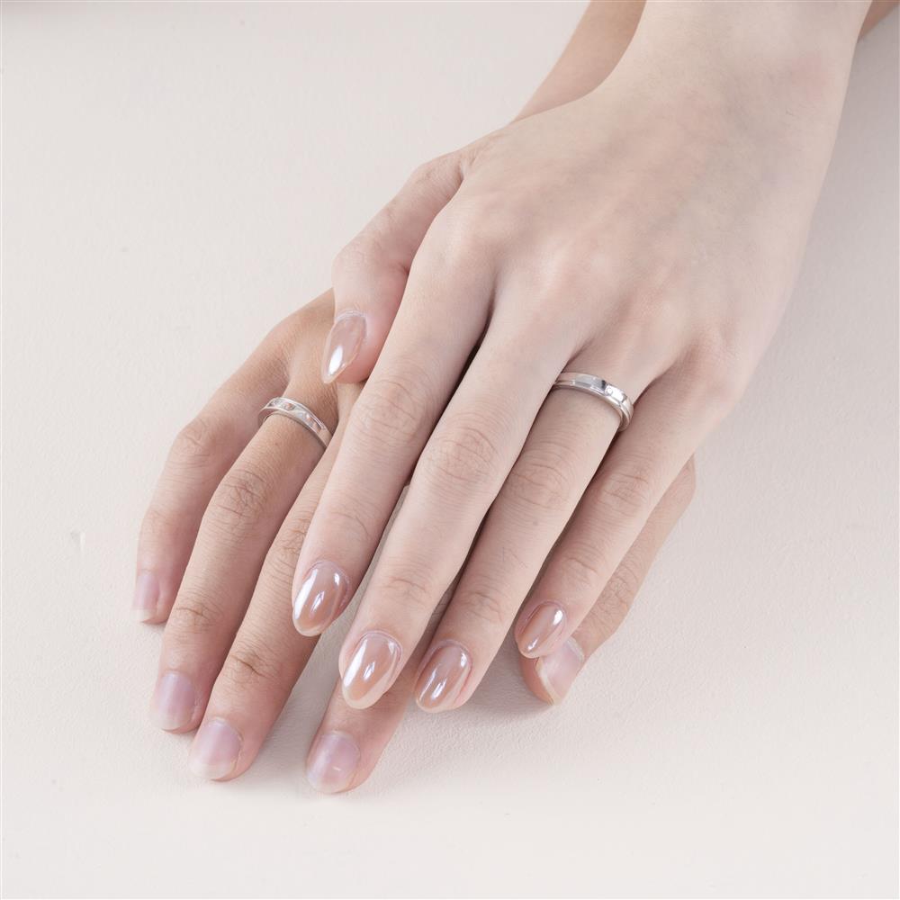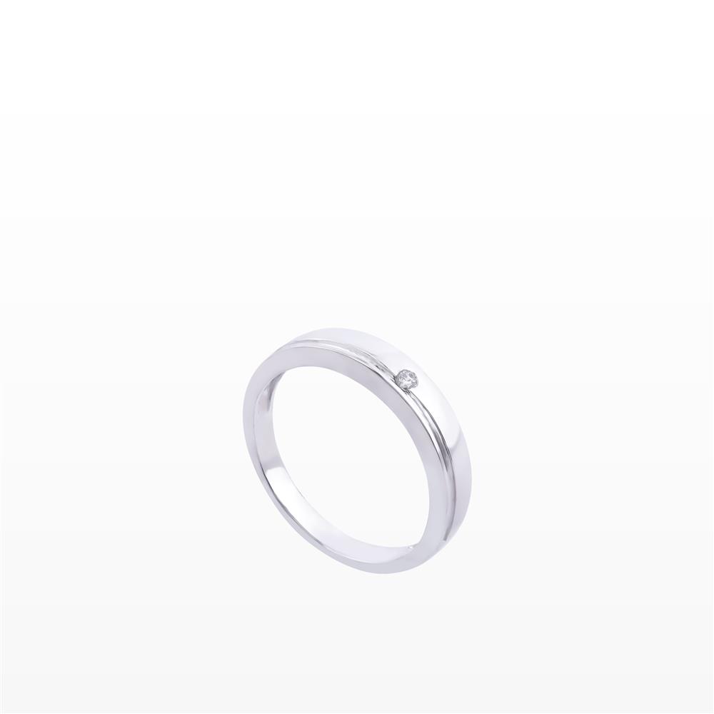 Bề mặt nhẫn được xử lý sáng bóng, điểm nhấn nhẹ ở đường viền trung tâm mang ý nghĩa: “hai người, một hành trình”.