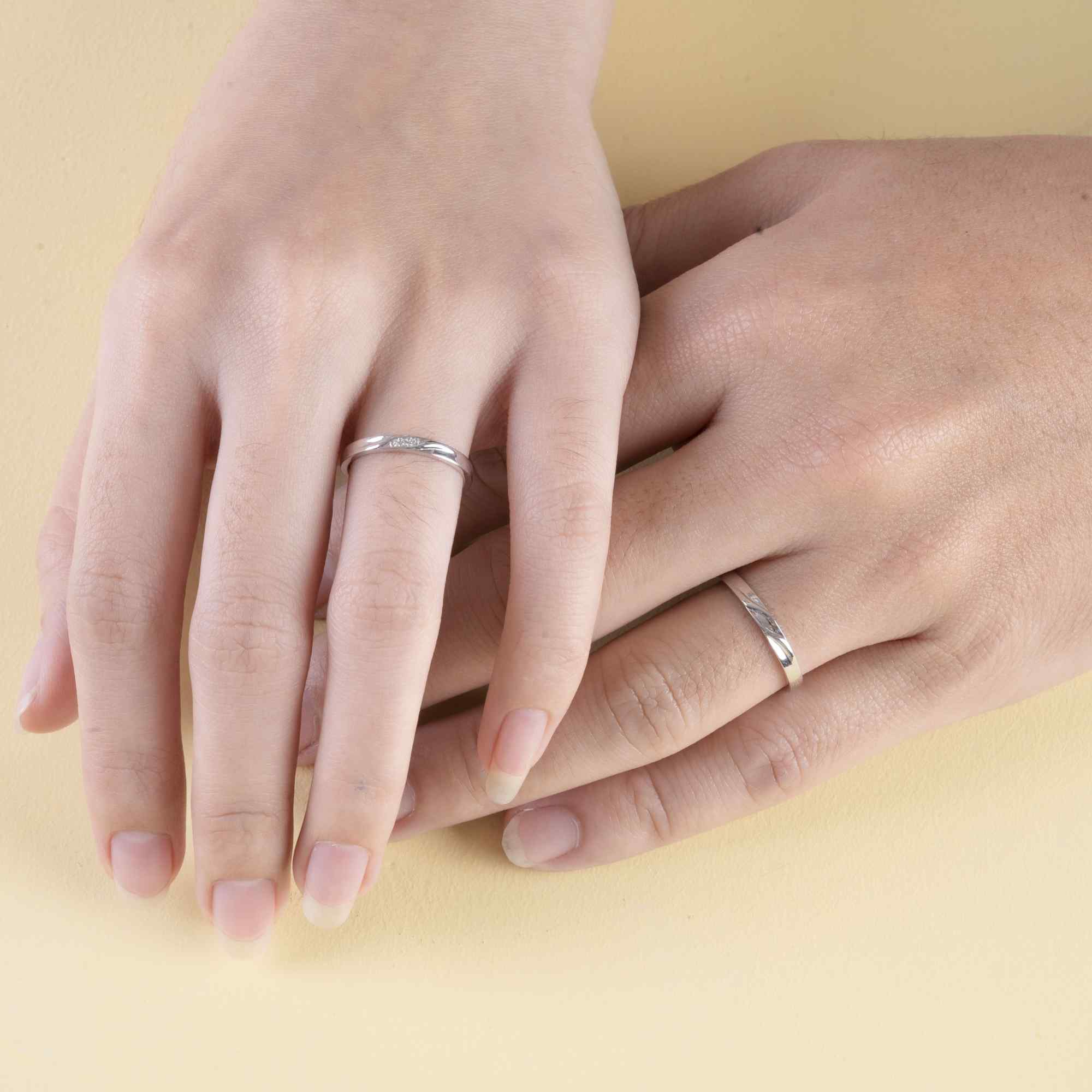 Thiết kế nhẫn cưới tinh giản với đường nét mềm mại, thanh lịch như một nụ cười nhẹ giữa hai người thấu hiểu nhau. Không phô trương, không cầu kỳ, đôi nhẫn là biểu tượng của sự gắn kết bền chặt – nơi tình yêu được vun đắp bằng tin tưởng, sẻ chia và đồng hành dài lâu.