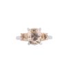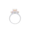 Hai viên đá màu nhỏ hai bên được sắp xếp cân đối, kết hợp cùng hàng kim cương tấm đính trên thân nhẫn, mang lại độ lấp lánh hài hòa và chiều sâu sang trọng cho tổng thể thiết kế.