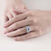 Phần thân nhẫn được thiết kế cầu kỳ với các dải kim cương đính nối tinh xảo hai bên, tạo cảm giác đầy đặn, sang trọng và khác biệt.