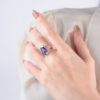 Nhẫn có một viên đá chính màu xanh tím ở trung tâm, màu tím của viên đá thường được liên tưởng đến sự huyền bí, sang trọng và trí tuệ. Chiếc nhẫn sẽ giúp bạn tự tin thể hiện cá tính của mình.