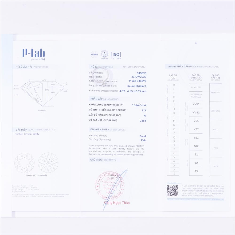 | Kim cương viên: | 4.57 - 4.65LY G/SI1 |