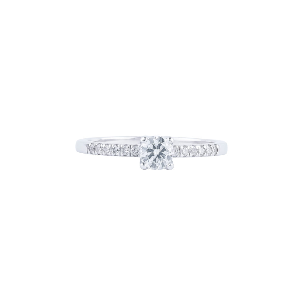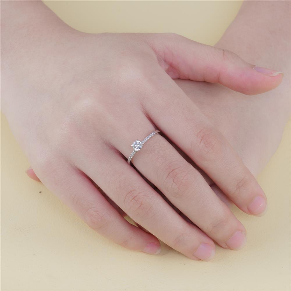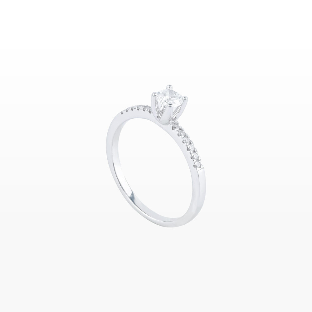 Chiếc nhẫn kim cương với thiết kế tối giản nhưng vô cùng tinh tế, tôn vinh vẻ đẹp thanh lịch và sang trọng. Viên kim cương chủ được nâng đỡ bởi 6 chấu chắc chắn, tỏa sáng rực rỡ như biểu tượng của tình yêu vĩnh cửu.