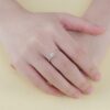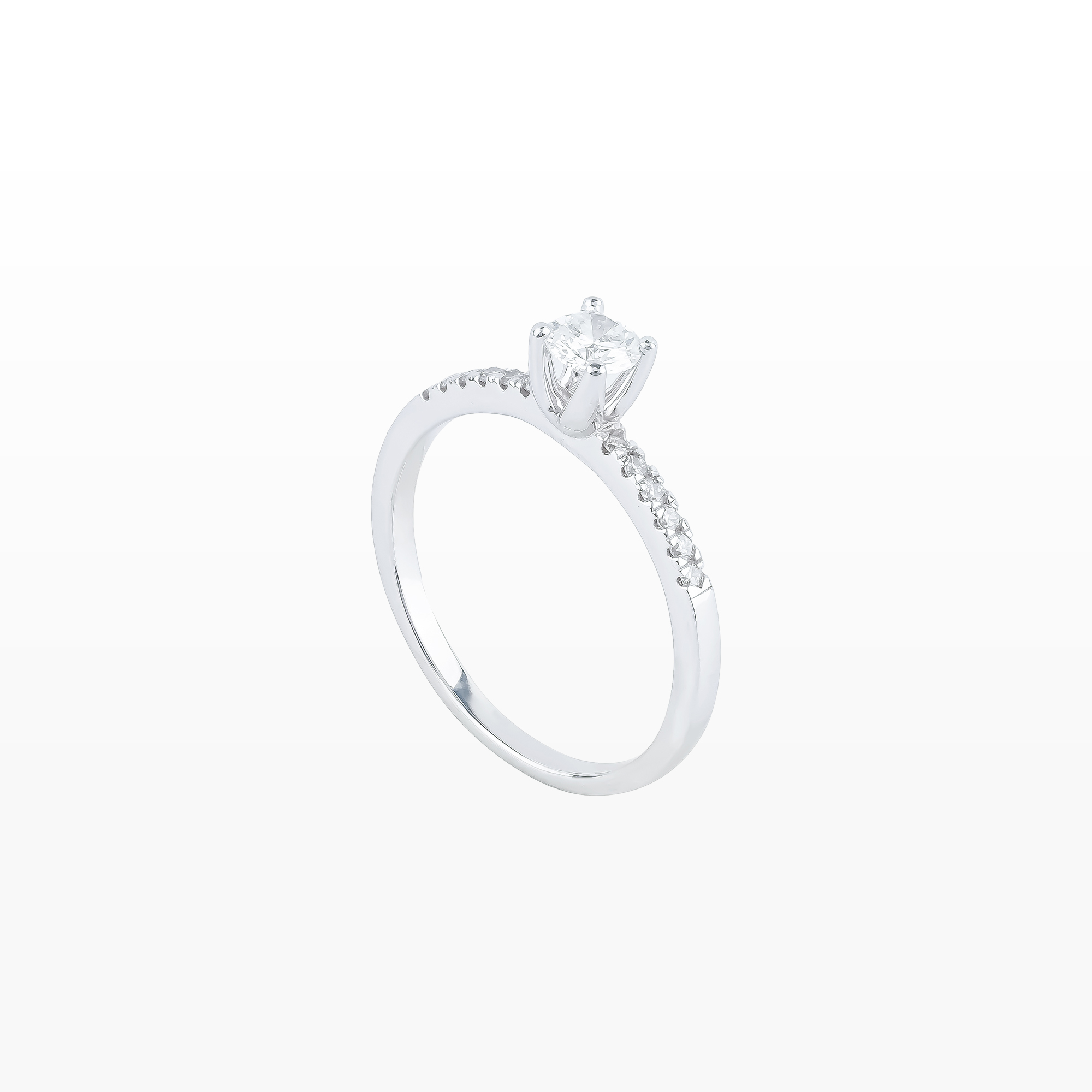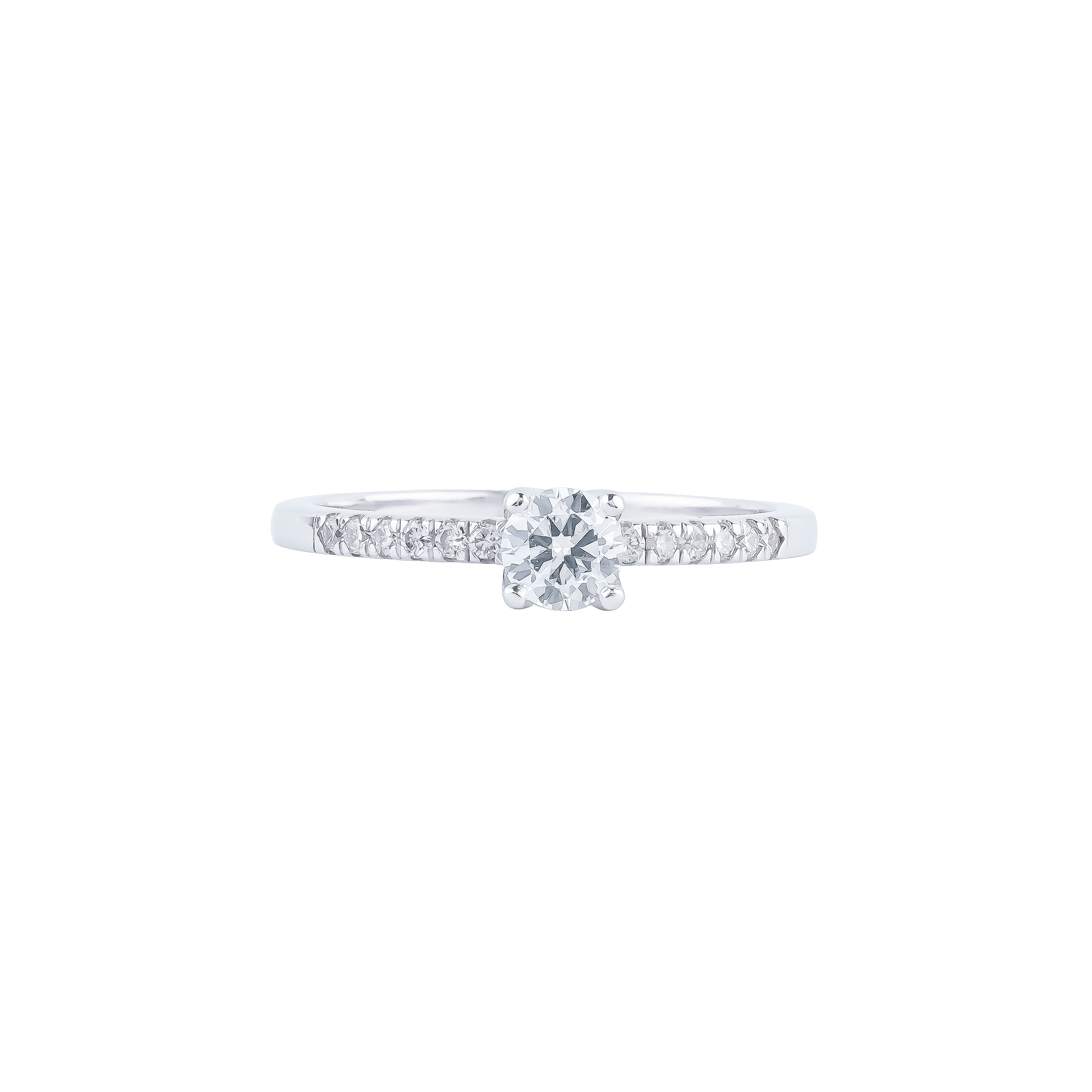 Thân nhẫn được điểm xuyết những viên kim cương tấm nhỏ lấp lánh, tạo hiệu ứng ánh sáng tuyệt đẹp khi chuyển động. Đây là lựa chọn hoàn hảo cho lời cầu hôn ý nghĩa, món quà kỷ niệm đáng trân quý hoặc phụ kiện đẳng cấp tôn vinh phong cách tinh giản nhưng đầy sức hút.