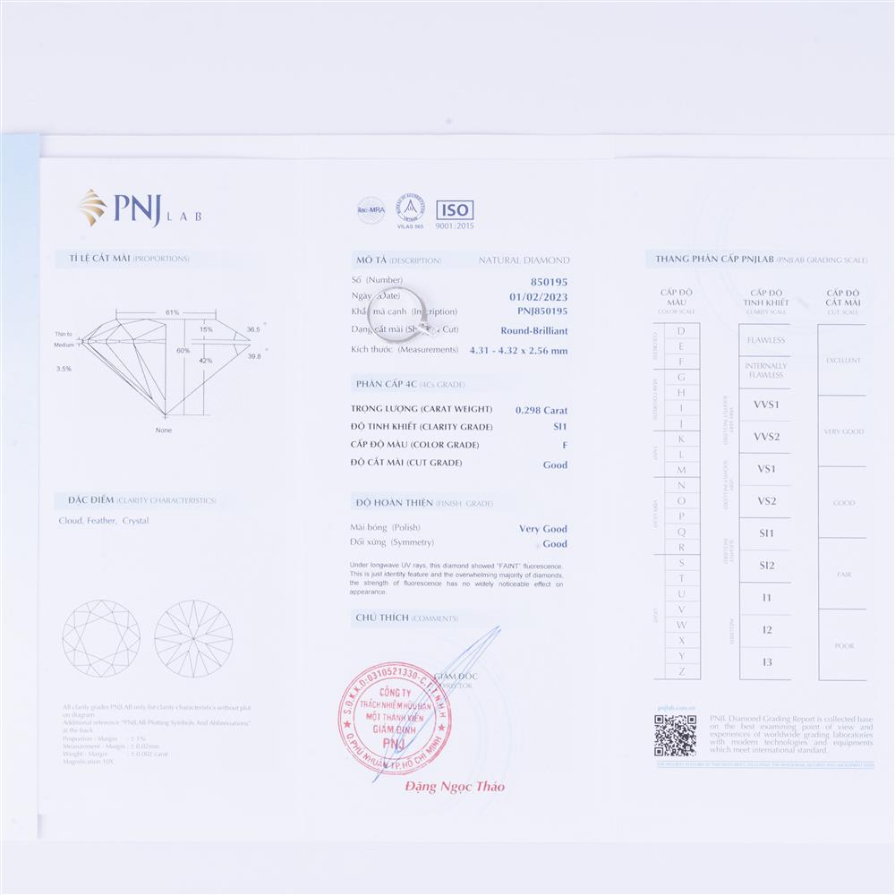 | Kim cương viên: | 4.31 - 4.32LY F/SI1 |
