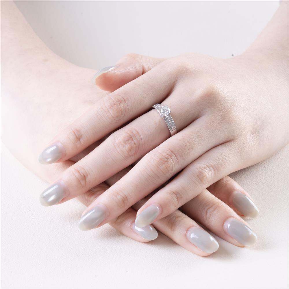 Thiết kế bản nhẫn chắc tay, hai hàng đá tấm chạy song song tạo hiệu ứng ánh sáng mạnh mẽ. Viên chủ ở trung tâm nổi bật như điểm nhấn của tự tin – lấp lánh nhưng không phô trương, sang trọng theo cách rất trưởng thành.
