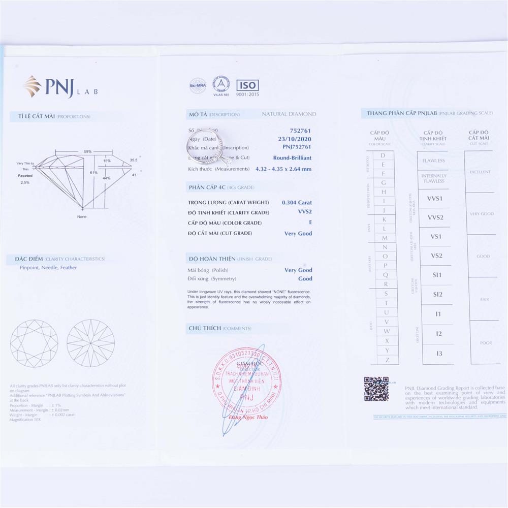 | Kim cương viên: | 4.32 - 4.35 LY E/VVS2 |