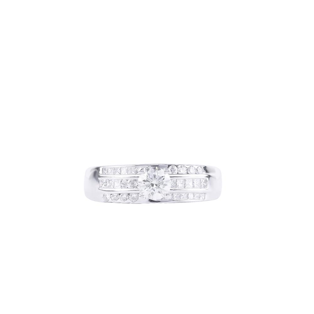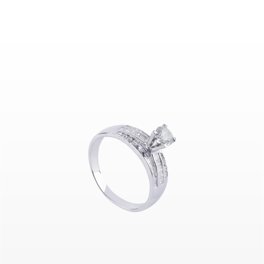 Chiếc nhẫn kim cương bản to mạnh mẽ với thiết kế ba hàng kim cương tấm song song, làm nền cho viên chủ tròn rực rỡ ở trung tâm. Sự kết hợp hài hòa giữa vẻ cân đối và ánh sáng lấp lánh tạo nên phong cách sang trọng, quyền lực và đầy đẳng cấp. Đây là lựa chọn hoàn hảo cho những ai muốn khẳng định sự tự tin và khác biệt.