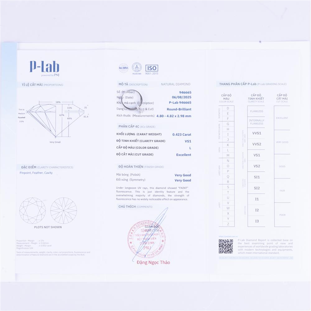 | Kim cương viên: | 4.80 - 4.82 LY L/VS1 |