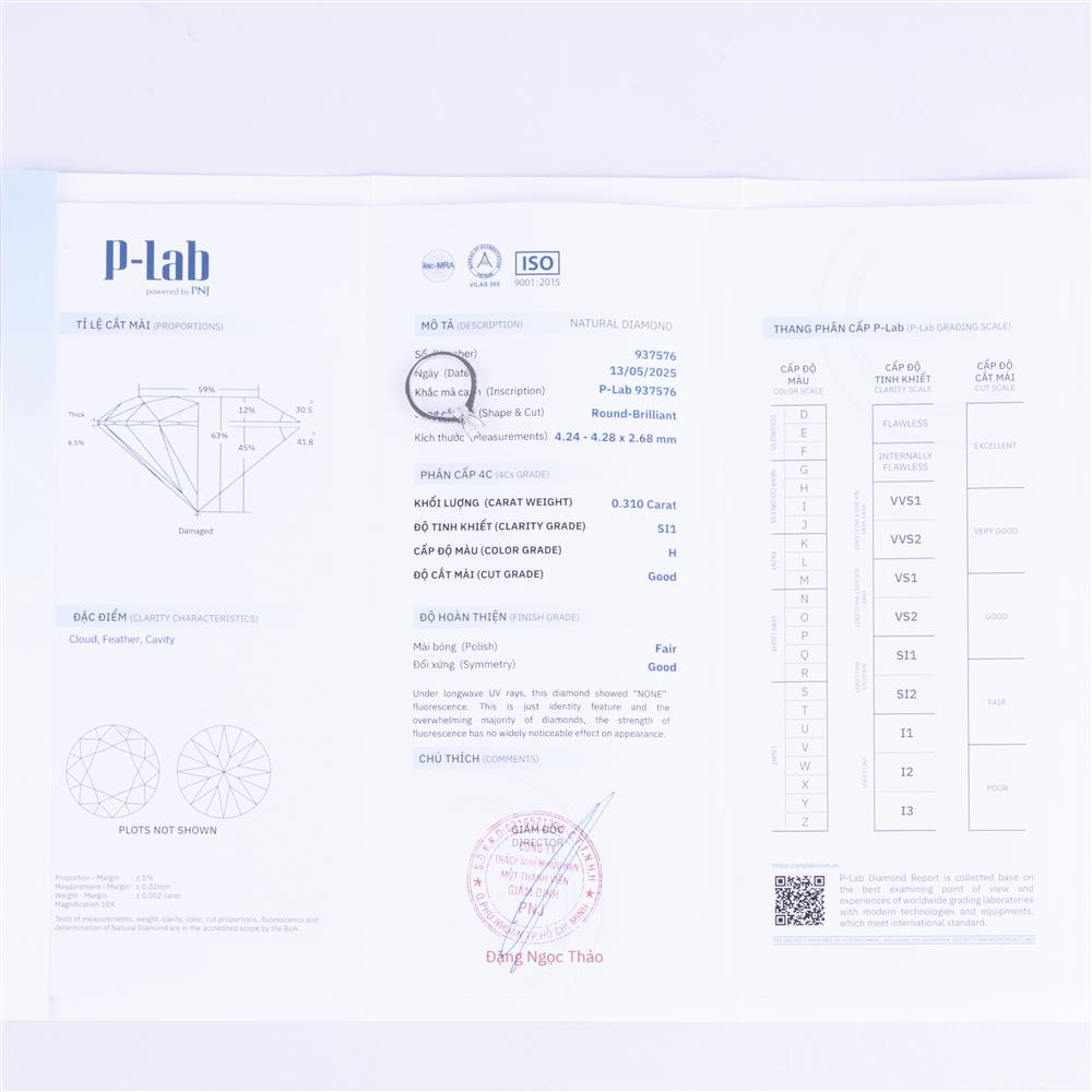 | Kim cương viên: | 4.24 - 4.28LY H/SI1 |