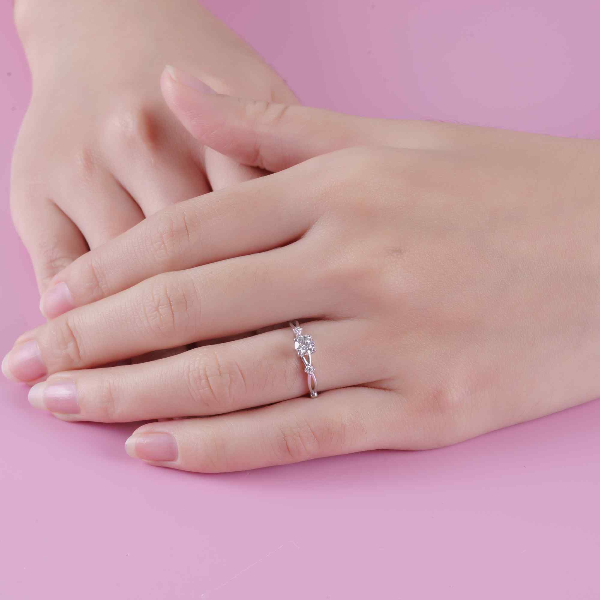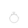 Viên kim cương chủ được nâng cao trong thiết kế ổ chấu thanh thoát, đón trọn ánh sáng từ mọi góc nhìn, tỏa ra vẻ rực rỡ tinh khôi. Hai bên thân nhẫn là những viên kim cương nhỏ được sắp đặt cân đối, như những lời thì thầm dịu dàng, làm nền để ánh sáng trung tâm càng thêm nổi bật. Sự hài hòa giữa dáng nhẫn mảnh mai và cấu trúc vững vàng tạo nên cảm giác vừa mong manh, vừa bền bỉ – giống như tình yêu chân thành.