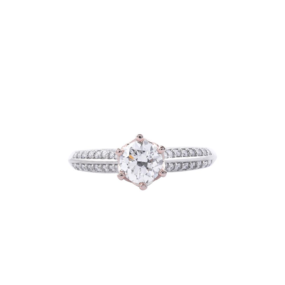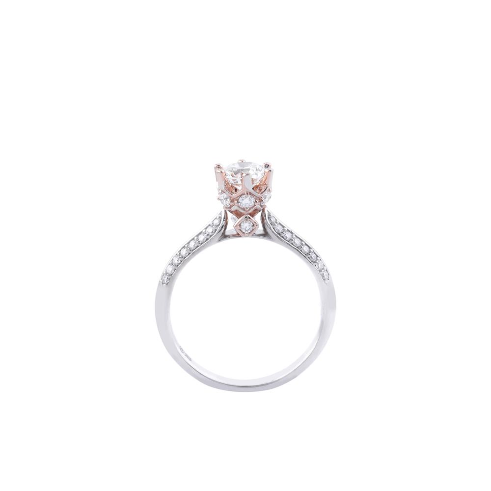 Nhẫn kim cương ổ chủ dáng vương miện hai tông màu toát lên vẻ đẹp sang trọng và tinh tế, là lựa chọn hoàn hảo để tôn vinh viên kim cương trung tâm rực rỡ. Phần ổ nhẫn vàng hồng được tạo hình như vương miện mềm mại, ôm trọn viên đá chủ, vừa làm nổi bật độ lấp lánh vừa mang ý nghĩa trân quý và nâng niu.
