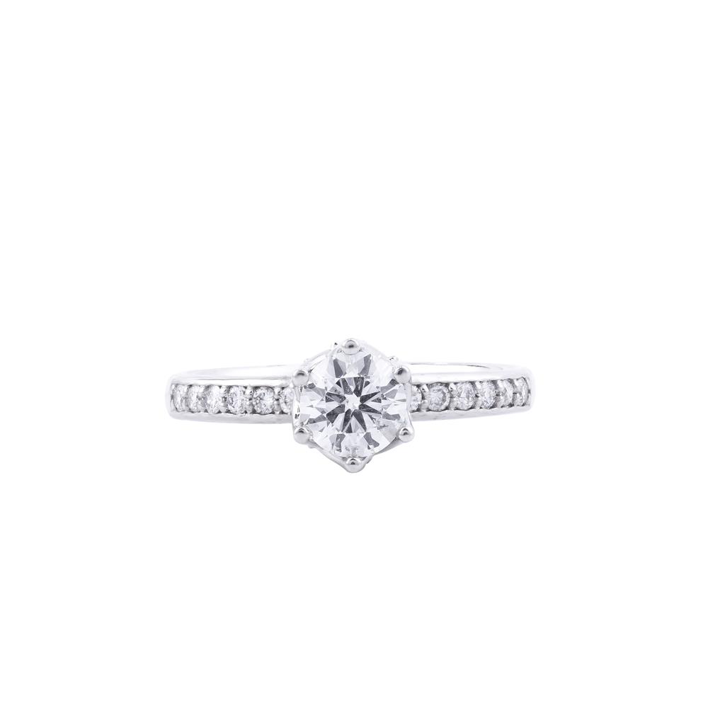Nhẫn kim cương ổ chủ dáng classic ánh trắng mang vẻ đẹp thuần khiết và thanh lịch, tôn vinh trọn vẹn viên kim cương trung tâm theo phong cách vượt thời gian. Phần ổ nhẫn được thiết kế tinh gọn, ôm chắc viên đá, giúp kim cương đón ánh sáng tối ưu và tỏa sáng rực rỡ từ mọi góc nhìn.