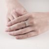 Phần thân nhẫn được đính kim cương tấm đều đặn, tạo hiệu ứng lấp lánh liên tục và tăng thêm chiều sâu sang trọng cho tổng thể thiết kế.