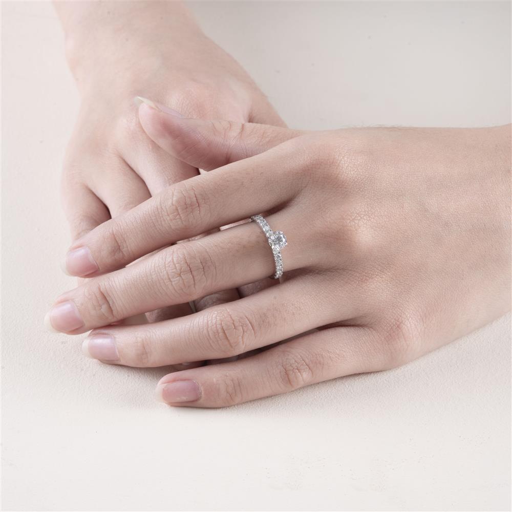 Chiếc nhẫn kim cương mang thiết kế solitaire kinh điển, nổi bật với viên kim cương tròn trung tâm được đính chấu tinh xảo, tôn cao vẻ đẹp trong trẻo và khả năng bắt sáng rực rỡ. Viên chủ trở thành điểm nhấn hoàn hảo, thu hút ánh nhìn ngay từ cái nhìn đầu tiên.