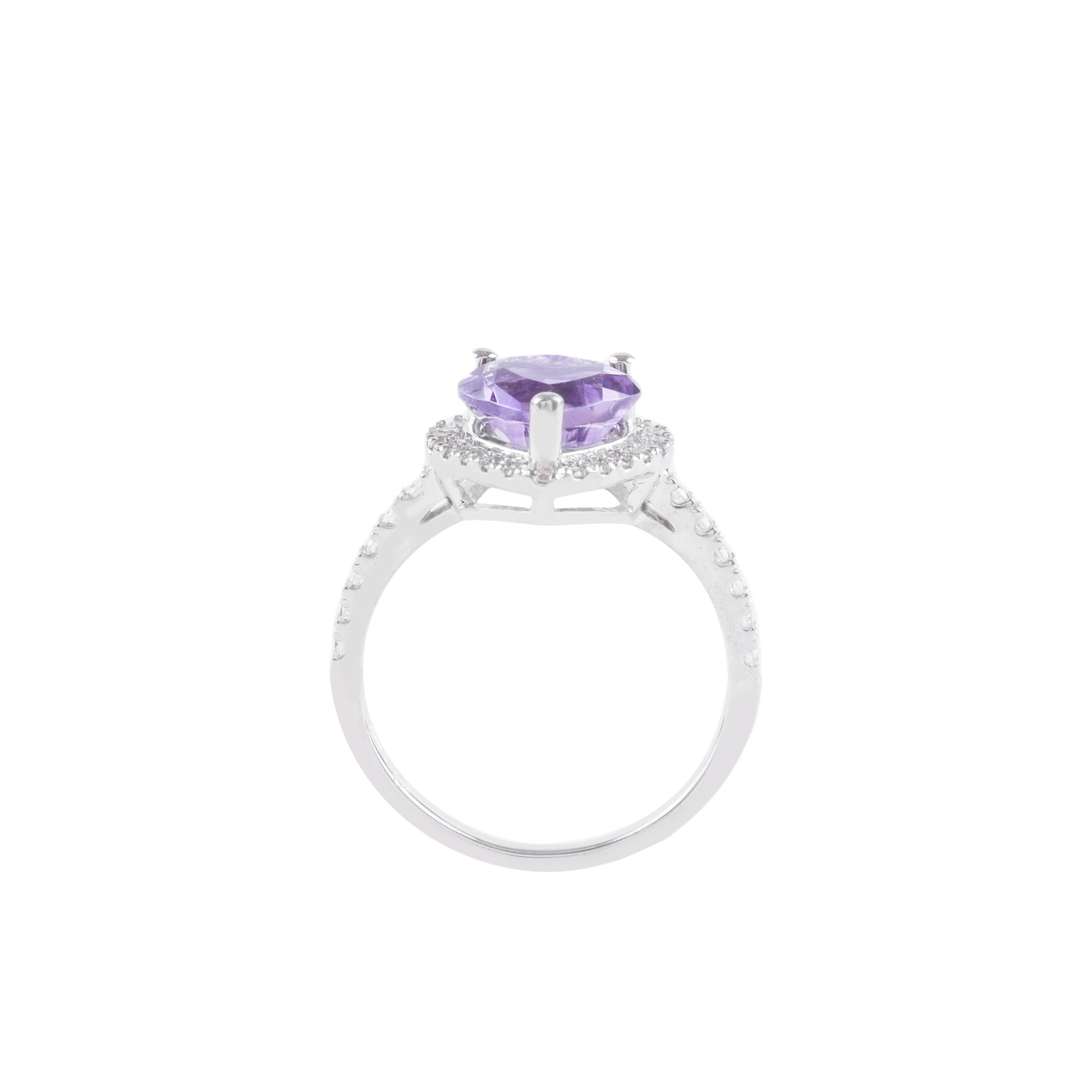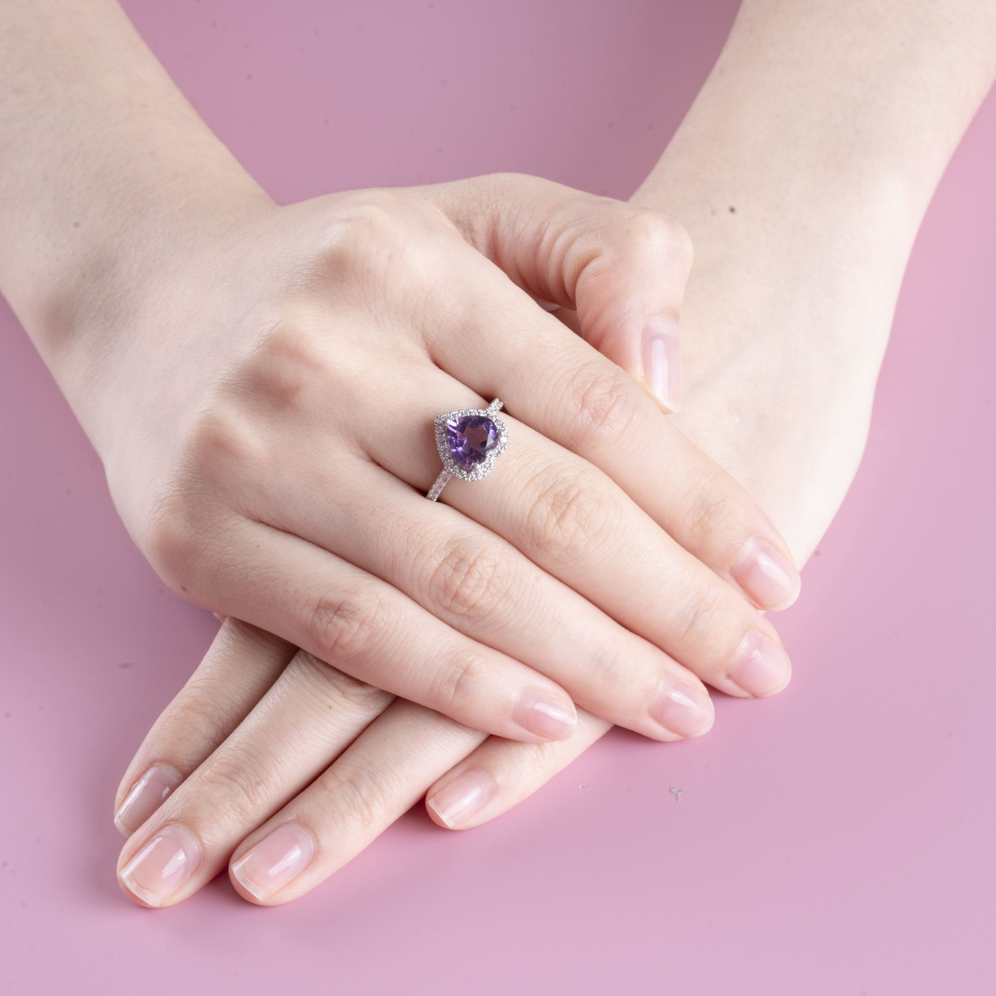 Thiết kế nổi bật với viên đá tím dáng trái tim, biểu tượng của tình yêu và những cảm xúc tinh tế. Sắc tím dịu nhẹ mang đến cảm giác sâu lắng, vừa ngọt ngào vừa sang trọng – một vẻ đẹp không quá rực rỡ nhưng đầy cuốn hút.