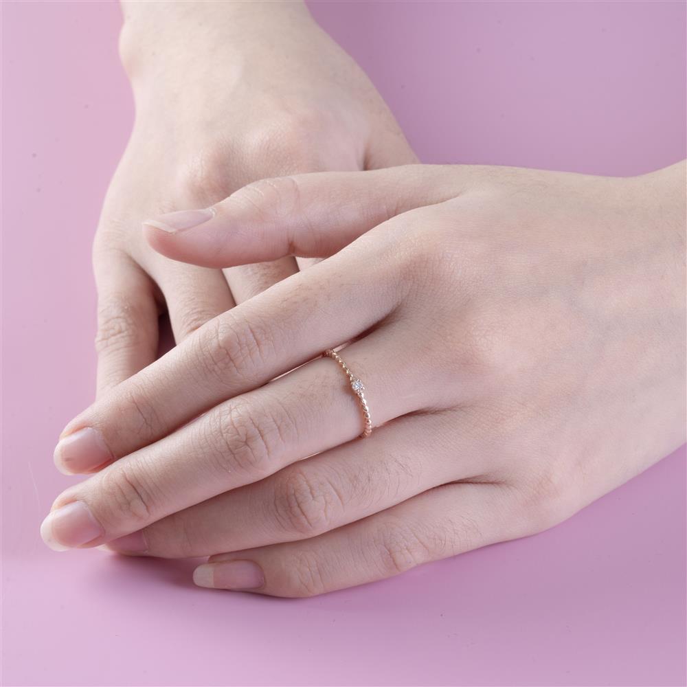 Tựa như một sợi duyên mềm mại quấn quanh ngón tay, chiếc nhẫn xoắn hồng kim cương mang vẻ đẹp ngọt ngào và đầy rung cảm. Những đường xoắn uyển chuyển tạo nên nhịp điệu êm ái, gợi liên tưởng đến dòng chảy yêu thương luôn tiếp nối – nhẹ nhàng nhưng bền bỉ theo thời gian.Viên kim cương nhỏ e ấp ở trung tâm được nâng niu bởi những chấu thanh mảnh, khẽ bắt sáng trong từng chuyển động.