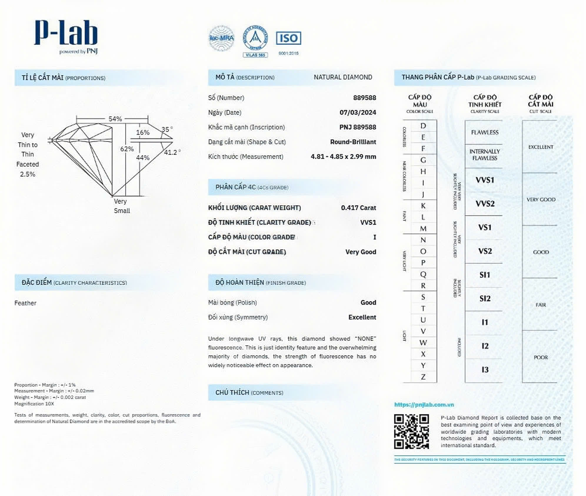Chiếc nhẫn kim cương được thiết kế với viên chủ hình vuông, được bao quanh bởi một hàng kim cương nhỏ lấp lánh. Thiết kế này tạo nên sự cân đối và hài hòa, đồng thời tôn lên vẻ đẹp của viên chủ.