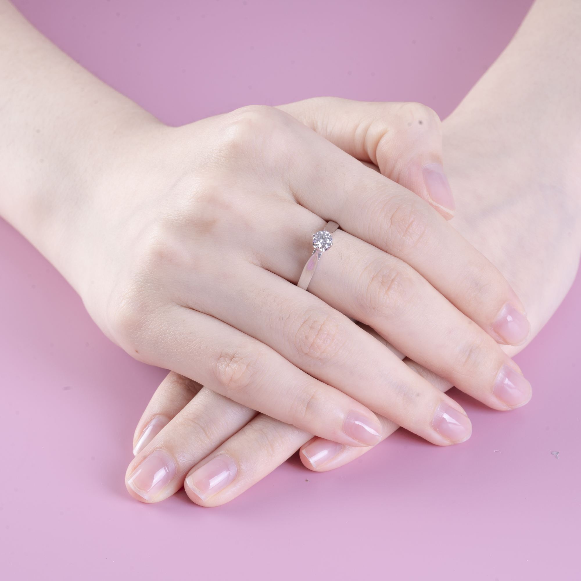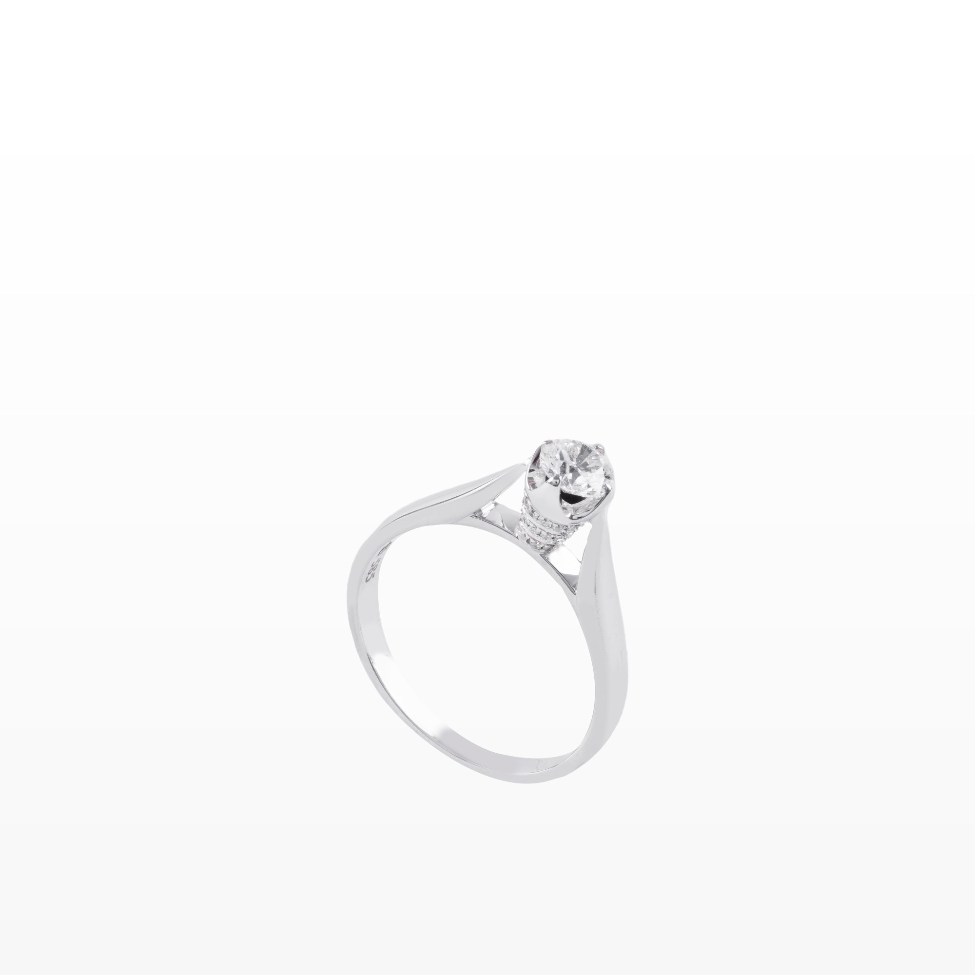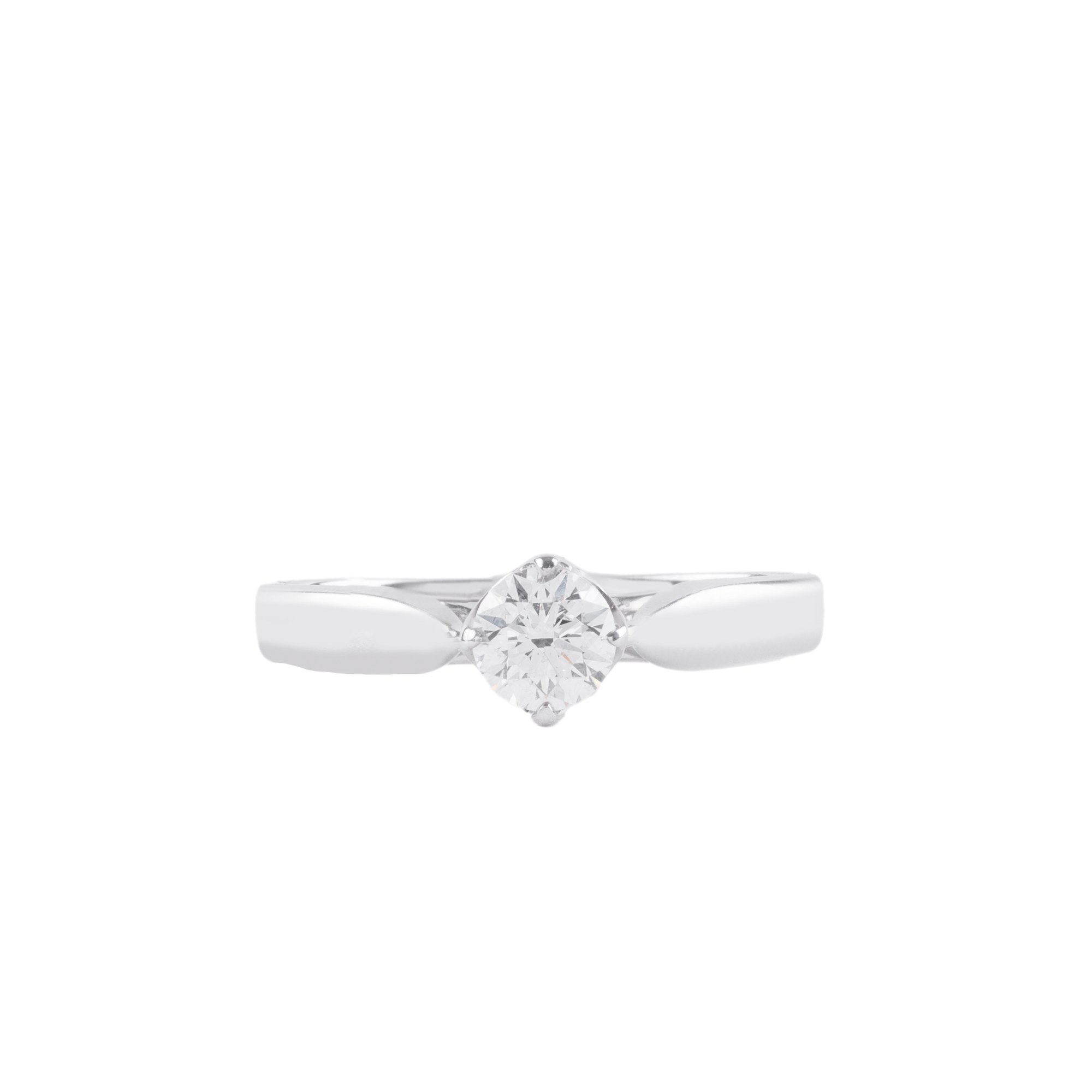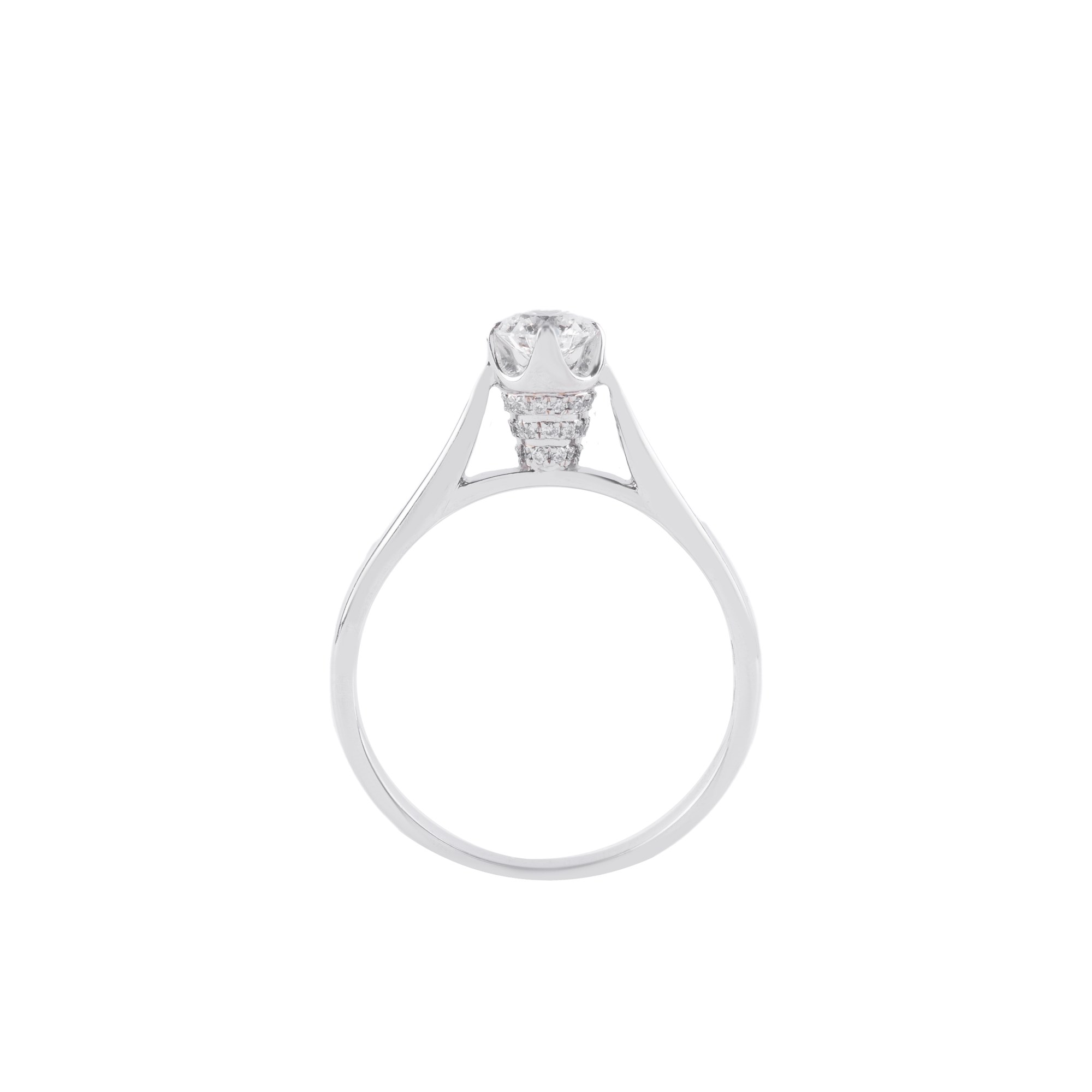 Chiếc nhẫn mang thiết kế solitaire kinh điển, tôn vinh trọn vẹn vẻ đẹp của viên kim cương tròn rực rỡ tại trung tâm. Với kiểu cắt hoàn hảo, viên đá phản chiếu ánh sáng đa chiều, tạo nên độ lấp lánh tinh khiết và cuốn hút trong từng chuyển động.