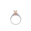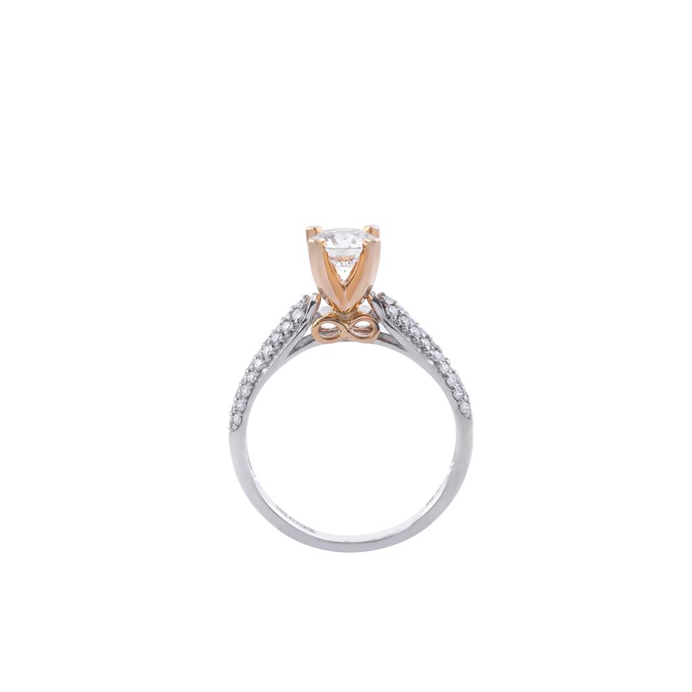 Nhẫn kim cương ổ chủ hai tông màu dáng vương miện là hiện thân của vẻ đẹp sang trọng và tinh tế, được chế tác để làm nổi bật viên kim cương trung tâm một cách trọn vẹn. Phần ổ nhẫn vàng hồng ôm giữ viên đá như một vương miện mềm mại, tôn lên độ lấp lánh và giá trị của viên kim cương chủ.
