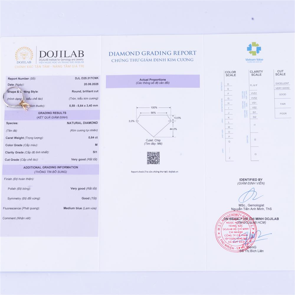 | Kim cương viên: | 5.59 - 5.64 LY M/SI1 |