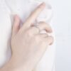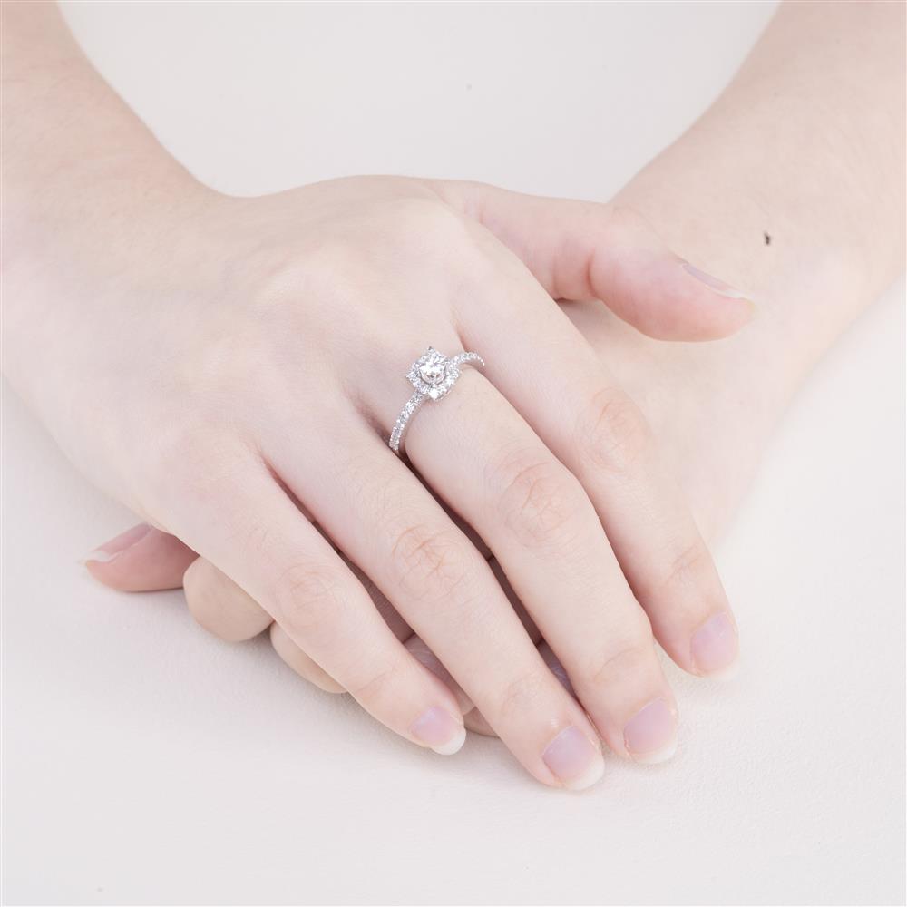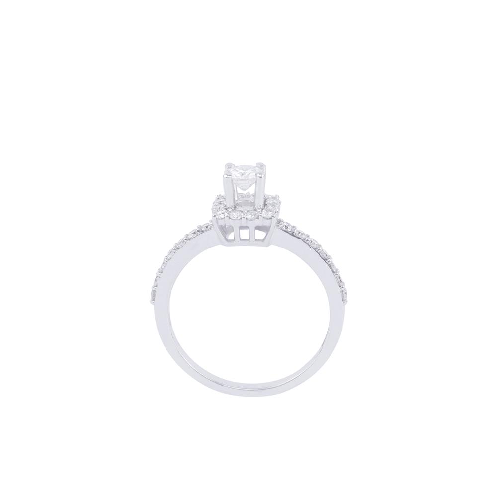 Thiết kế tinh giản nhưng đầy cuốn hút với phần ổ đính viền kim cương tấm bao quanh vị trí viên đá chủ, tạo hiệu ứng sáng nổi bật. Thân nhẫn thanh mảnh, được nạm kim cương dọc hai bên, mang lại vẻ nhẹ nhàng và tôn trọn sự lấp lánh. Mẫu nhẫn phù hợp cho cả phong cách thường ngày lẫn những dịp đặc biệt, khẳng định gu thẩm mỹ sang trọng và tinh tế.