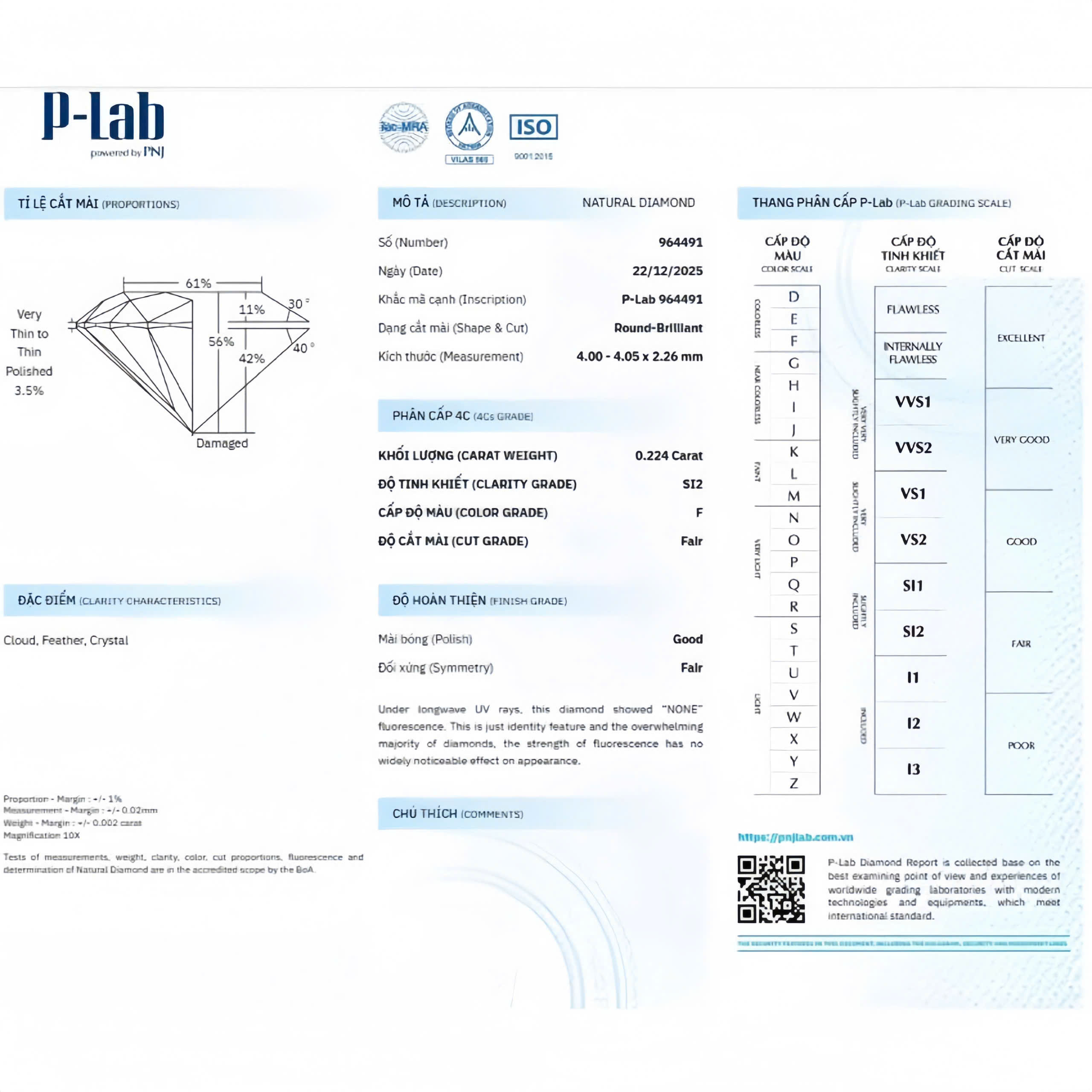 Ở trung tâm là viên kim cương chủ rực rỡ, được bao bọc bởi vòng viên kim cương tấm nhỏ lấp lánh như một vầng hào quang dịu dàng. Thiết kế halo không chỉ làm nổi bật kích thước và độ sáng của viên kim cương, mà còn mang ý nghĩa sâu sắc về sự che chở, trân trọng và nâng niu những điều quý giá nhất.