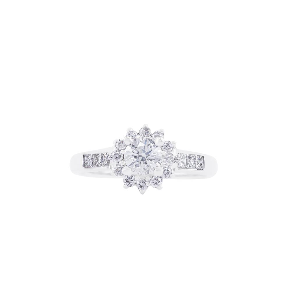 Chiếc nhẫn kim cương tinh xảo này là tuyệt tác nghệ thuật, nơi vẻ đẹp kiêu sa và sự đẳng cấp hội tụ. Viên kim cương chủ rực rỡ, được cắt mài hoàn hảo, tỏa sáng như ngôi sao dẫn lối, thu hút mọi ánh nhìn.