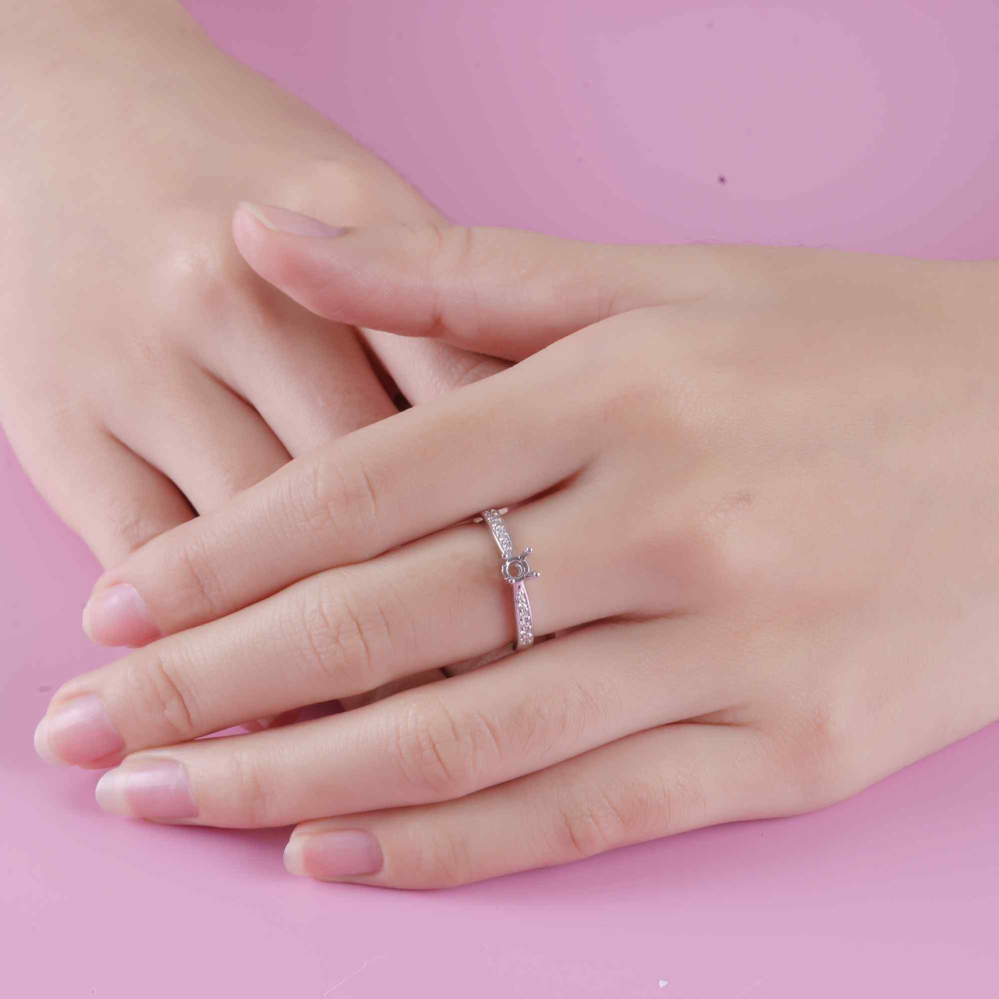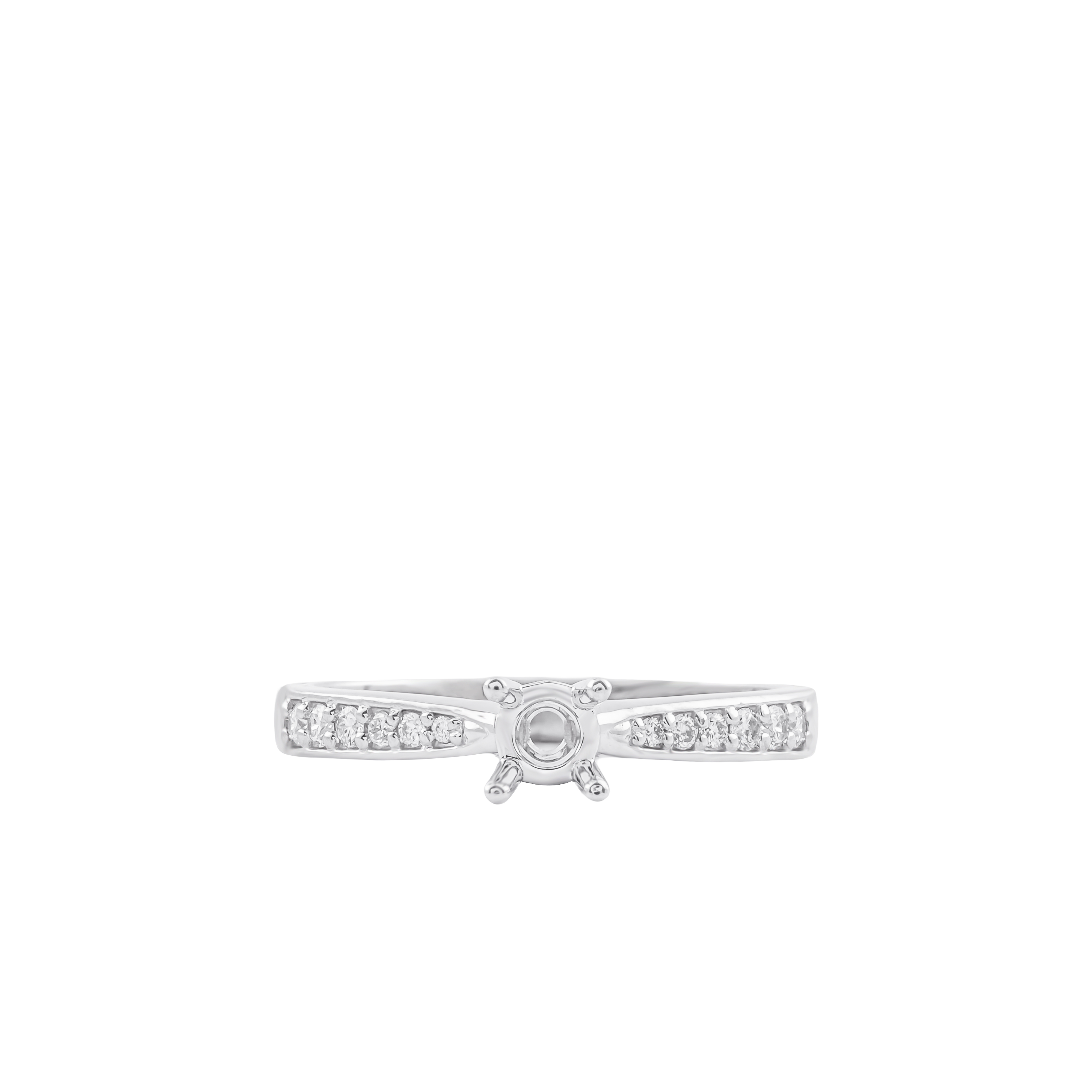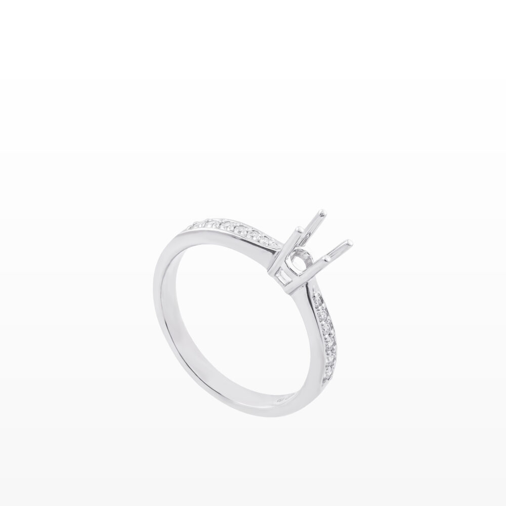 Thiết kế thanh mảnh, cân đối, với phần đai nhẫn được điểm xuyết những viên kim cương nhỏ lấp lánh hai bên, như những vì sao âm thầm dẫn lối. Ở trung tâm là ổ chấu mở tinh tế, sẵn sàng nâng niu viên kim cương chủ – trái tim của chiếc nhẫn – khi khoảnh khắc định mệnh đến. Từng đường nét được chế tác tỉ mỉ để vừa tôn vinh ánh sáng, vừa giữ trọn sự vững vàng và bền bỉ theo thời gian.