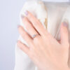 Thiết kế tổng thể của chiếc nhẫn mang lại cảm giác thanh thoát và quý phá . Hai bên của viên kim cương trung tâm còn có thêm hai viên kim cương nhỏ, tạo thêm điểm nhấn lấp lánh cho thiết kế tổng thể.