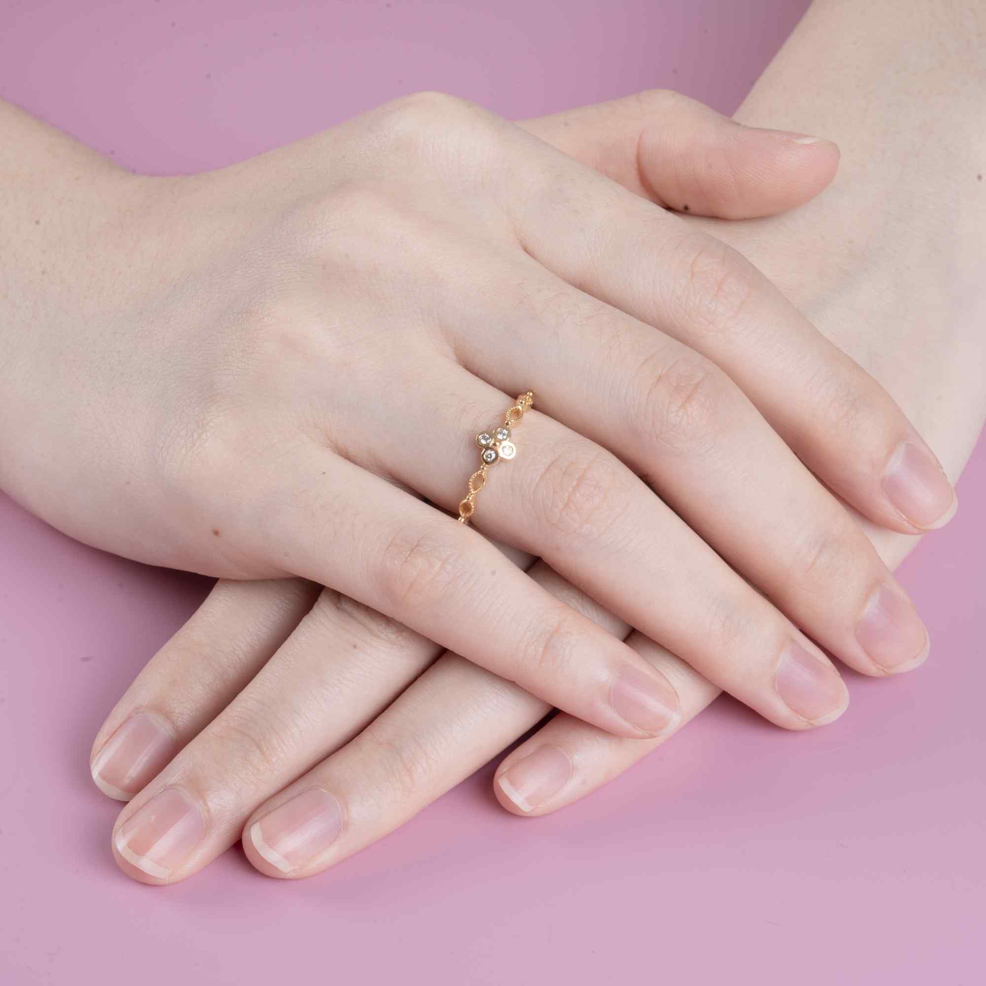 Đường nét thân nhẫn thanh mảnh, ôm nhẹ bàn tay, tạo cảm giác thoải mái khi đeo mỗi ngày. Mỗi chi tiết đều được chế tác cẩn trọng, để chiếc nhẫn không chỉ đẹp ở ánh nhìn đầu tiên, mà còn giữ được sự bền bỉ và cảm xúc theo thời gian.