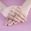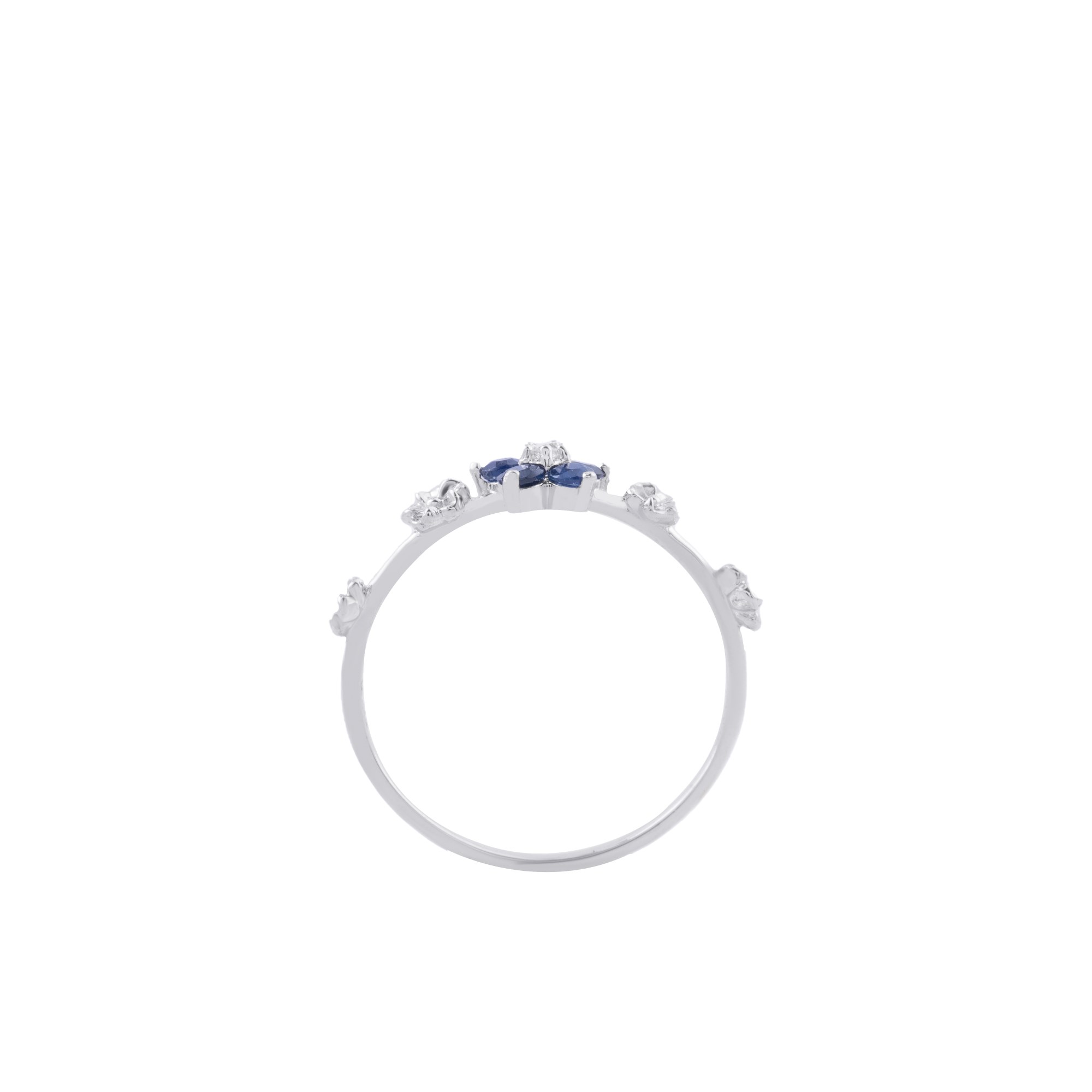 Chiếc nhẫn đá xanh họa tiết hoa mang vẻ đẹp dịu dàng và đầy sức sống. Cụm hoa trung tâm với những viên đá xanh nổi bật được điểm xuyết kim cương nhỏ, tạo hiệu ứng lấp lánh hài hòa và cuốn hút. Những chi tiết hoa nhỏ dọc thân nhẫn giúp tổng thể trở nên mềm mại, nữ tính và tinh tế hơn.