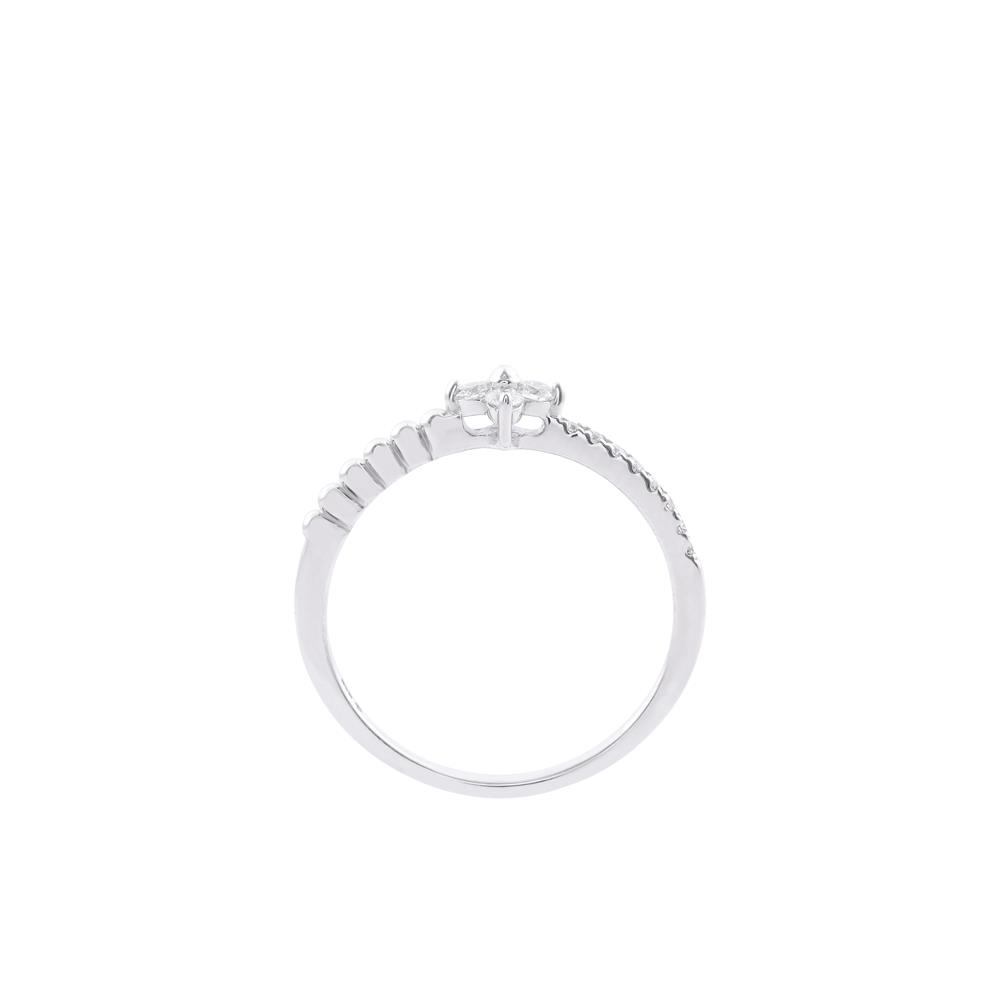 Thiết kế nhẫn gây ấn tượng với mặt hoa 4 cánh đính kim cương ở trung tâm, được chế tác tinh xảo, mang vẻ đẹp mềm mại và đầy nữ tính. Các cánh hoa lấp lánh nhẹ nhàng như đang nở rộ, tạo điểm nhấn thanh thoát nhưng vẫn thu hút ánh nhìn.