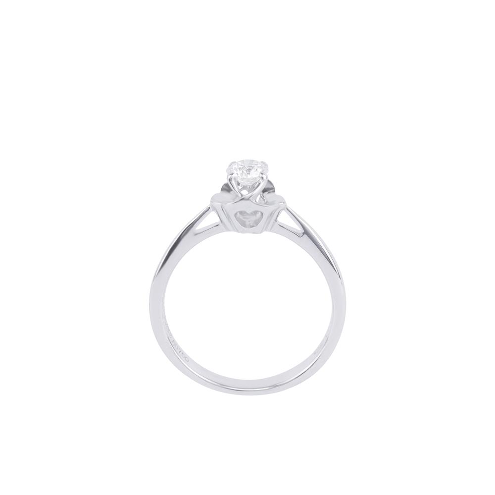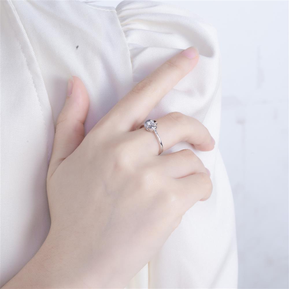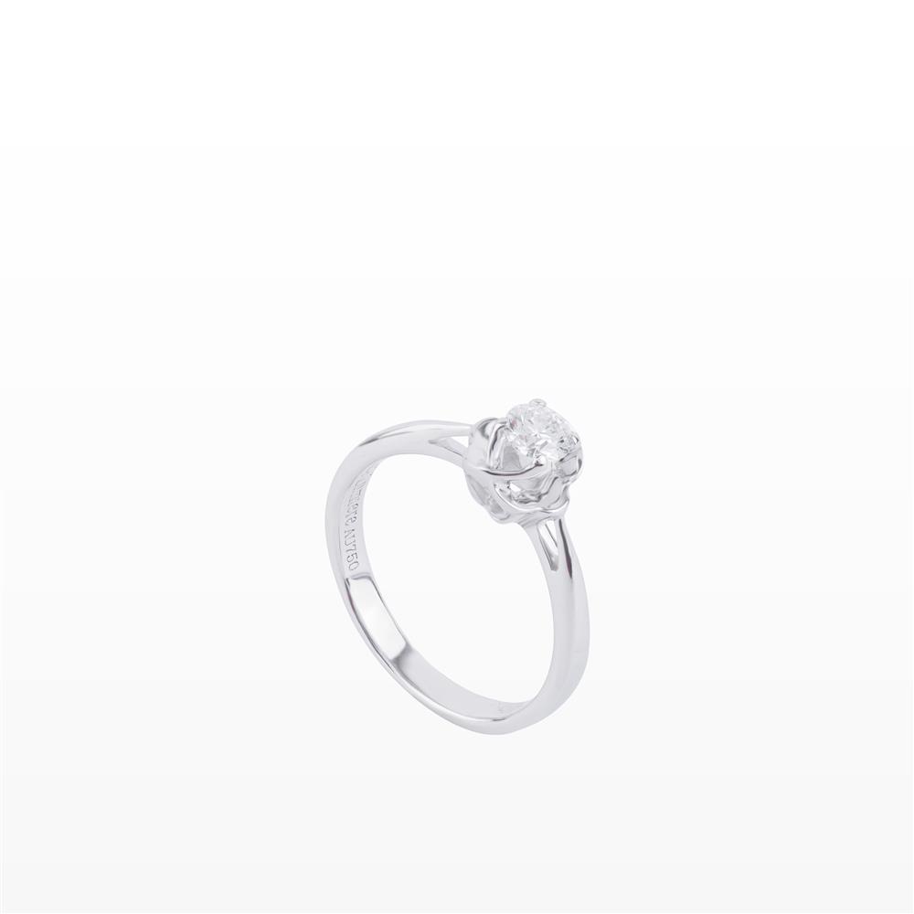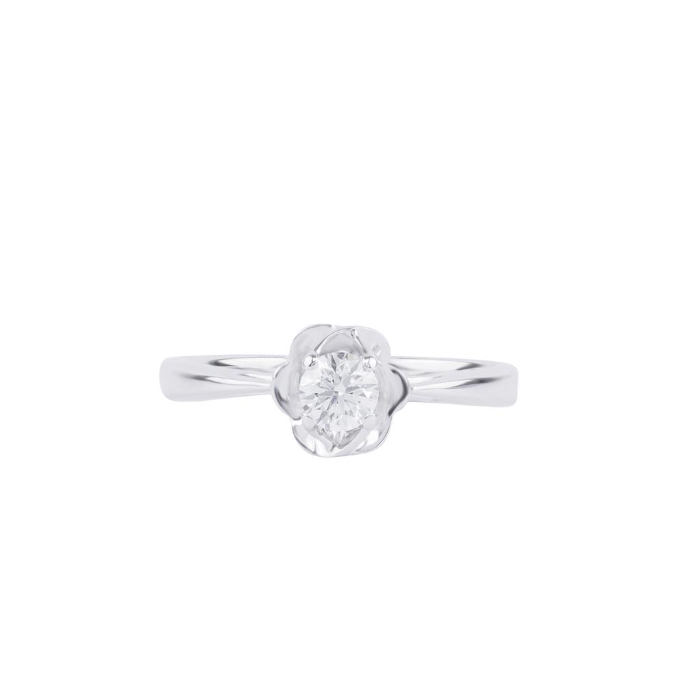 Tối giản nhưng đầy cuốn hút, mẫu nhẫn kim cương với thiết kế đế hoa ôm trọn viên đá chủ mang lại vẻ đẹp nhẹ nhàng và thanh lịch. Viên kim cương được giữ chắc chắn trong lòng hoa tròn mềm mại, như biểu tượng của một tình yêu thuần khiết và vững bền.
