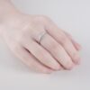 Mẫu nhẫn gây ấn tượng với thiết kế đính cụm kim cương tấm li ti, sắp xếp khéo léo theo đường cong nhẹ, tạo nên hiệu ứng ánh sáng lung linh tựa như chòm sao nhỏ giữa bầu trời đêm. Những viên đá được đính sát nhau nhưng vẫn đủ khoảng thở để từng tia sáng phản chiếu rõ ràng, mang đến tổng thể vừa tinh tế vừa rực rỡ
