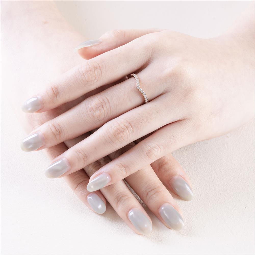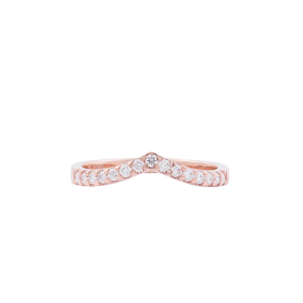 Thiết kế nhẫn V-line độc đáo giúp ngón tay thon dài nổi bật, kết hợp cùng dãy kim cương tấm lấp lánh mang lại vẻ sang trọng tinh tế. Phiên bản vàng hồng ấm áp, nữ tính—hoàn hảo để đeo đơn hoặc mix cùng nhẫn chủ tạo hiệu ứng nổi bật hơn.
