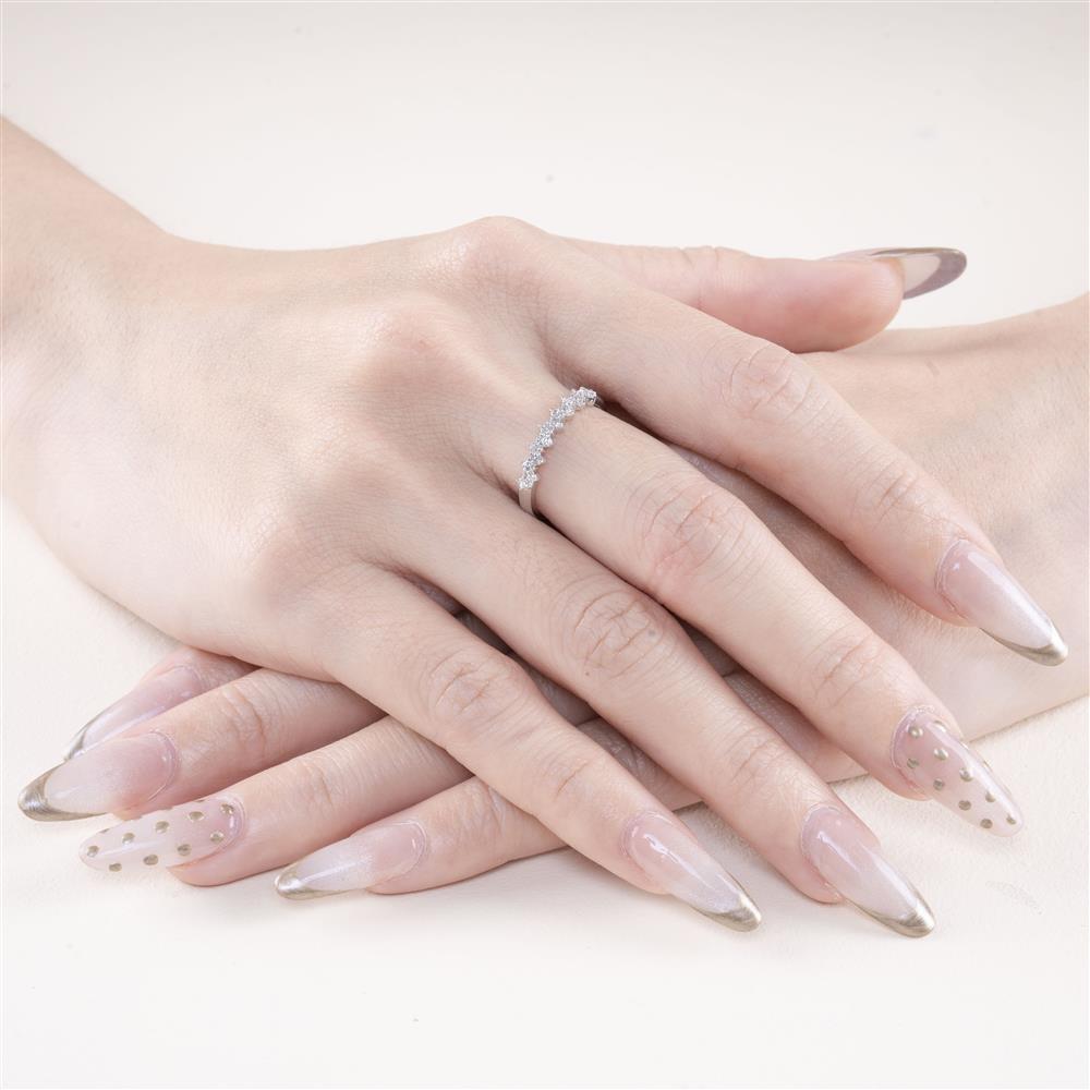 Thiết kế lấy cảm hứng từ vương miện của nữ hoàng, chiếc nhẫn được xếp dọc bởi những viên kim cương tròn nhỏ, tạo nên đường cong mềm mại và rực rỡ như ánh sáng vũ điệu.