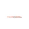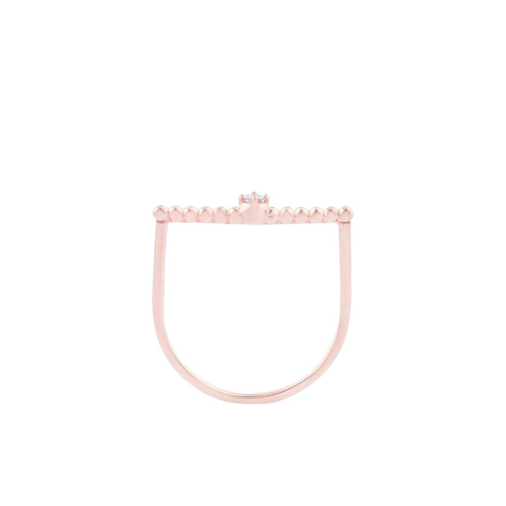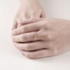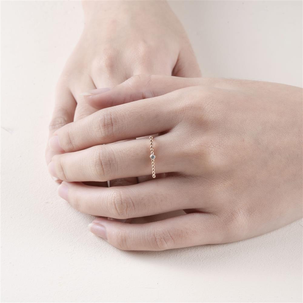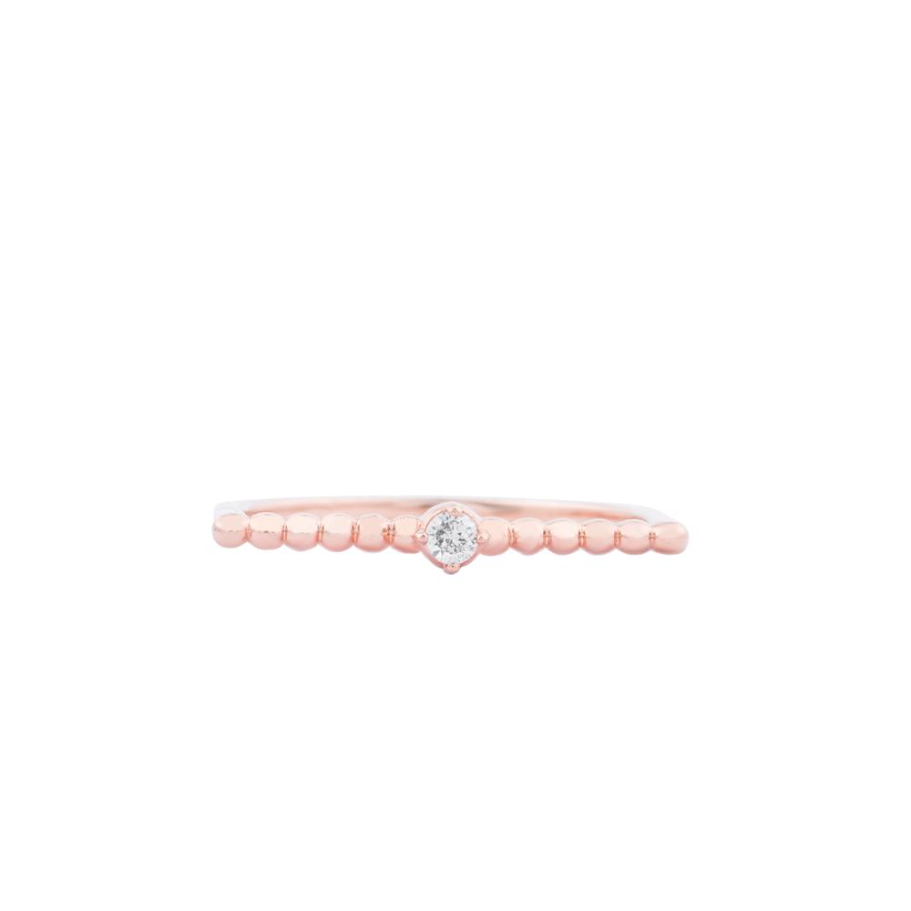 Thiết kế nhẫn mang vẻ đẹp êm ái và nữ tính, với chuỗi hạt tròn đều xếp nhịp nhàng như những nhịp cảm xúc nối tiếp nhau. Ở trung tâm, viên kim cương nhỏ được đặt tinh tế, tỏa sáng nhẹ nhàng—không rực rỡ phô trương mà đủ để làm trái tim khẽ rung.