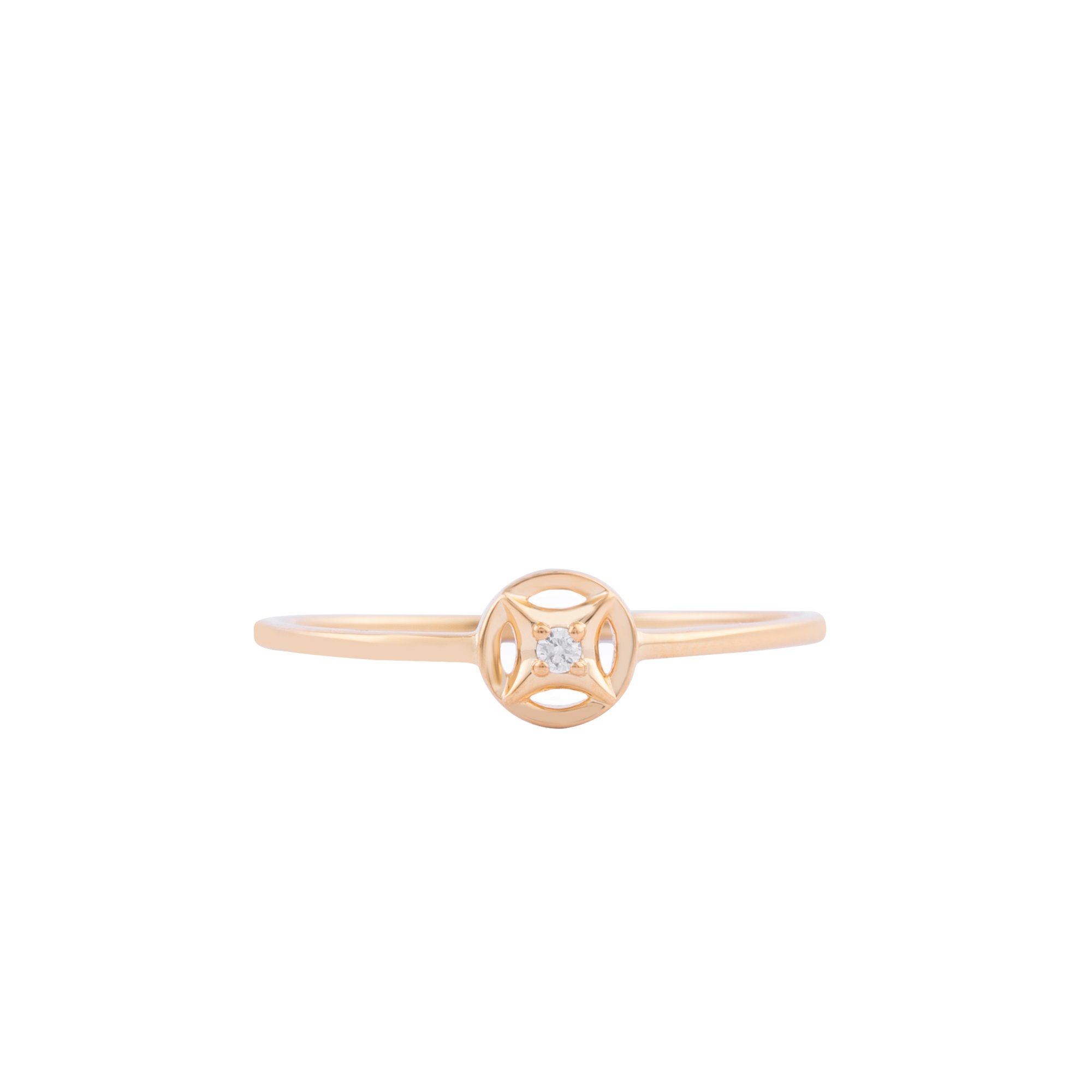 Thiết kế nhẫn lấy cảm hứng từ kim tiền cổ, biểu tượng của tài lộc, thịnh vượng và sự hanh thông trong cuộc sống. Dáng vòng tròn cân đối ôm trọn viên kim cương trung tâm như dòng chảy tiền bạc hội tụ, mang ý nghĩa giữ lộc – sinh lộc – lan tỏa may mắn.