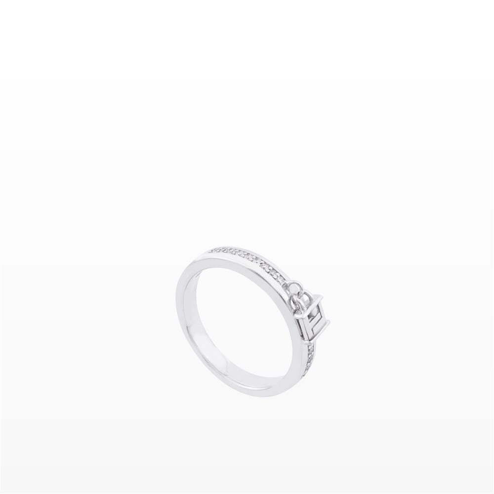 Tựa như một “ổ khóa tình yêu” thu nhỏ, thiết kế nhẫn Love Lock mang biểu tượng của sự gắn kết và lời hứa trọn vẹn. Thân nhẫn đính kim cương tấm li ti chạy dọc, tạo nên dải ánh sáng lung linh ôm trọn ngón tay. Điểm nhấn là charm ổ khóa cách điệu tinh xảo, với khung chữ H và chi tiết trái tim nhỏ xinh ở giữa – như lời nhắn gửi về một tình yêu được giữ gìn và trân trọng.