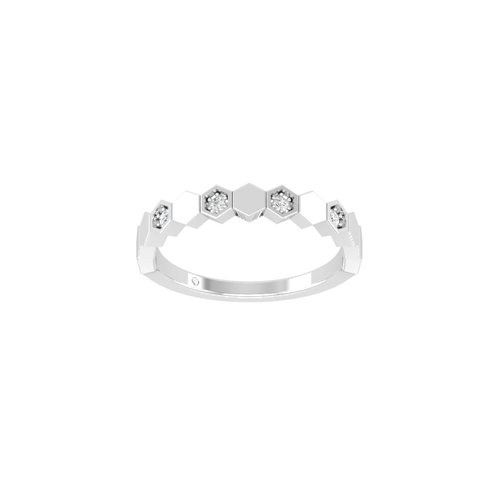 Các mắt lục giác được ghép nối liên tục tạo thành một dải chuyển động liền mạch, trong đó một số điểm được nạm kim cương tinh tế như những “điểm sáng” được sắp đặt có chủ ý. Sự xen kẽ giữa bề mặt kim loại trơn và các ô đá tạo nên nhịp điệu rất hiện đại, vừa gọn gàng vừa có chiều sâu.