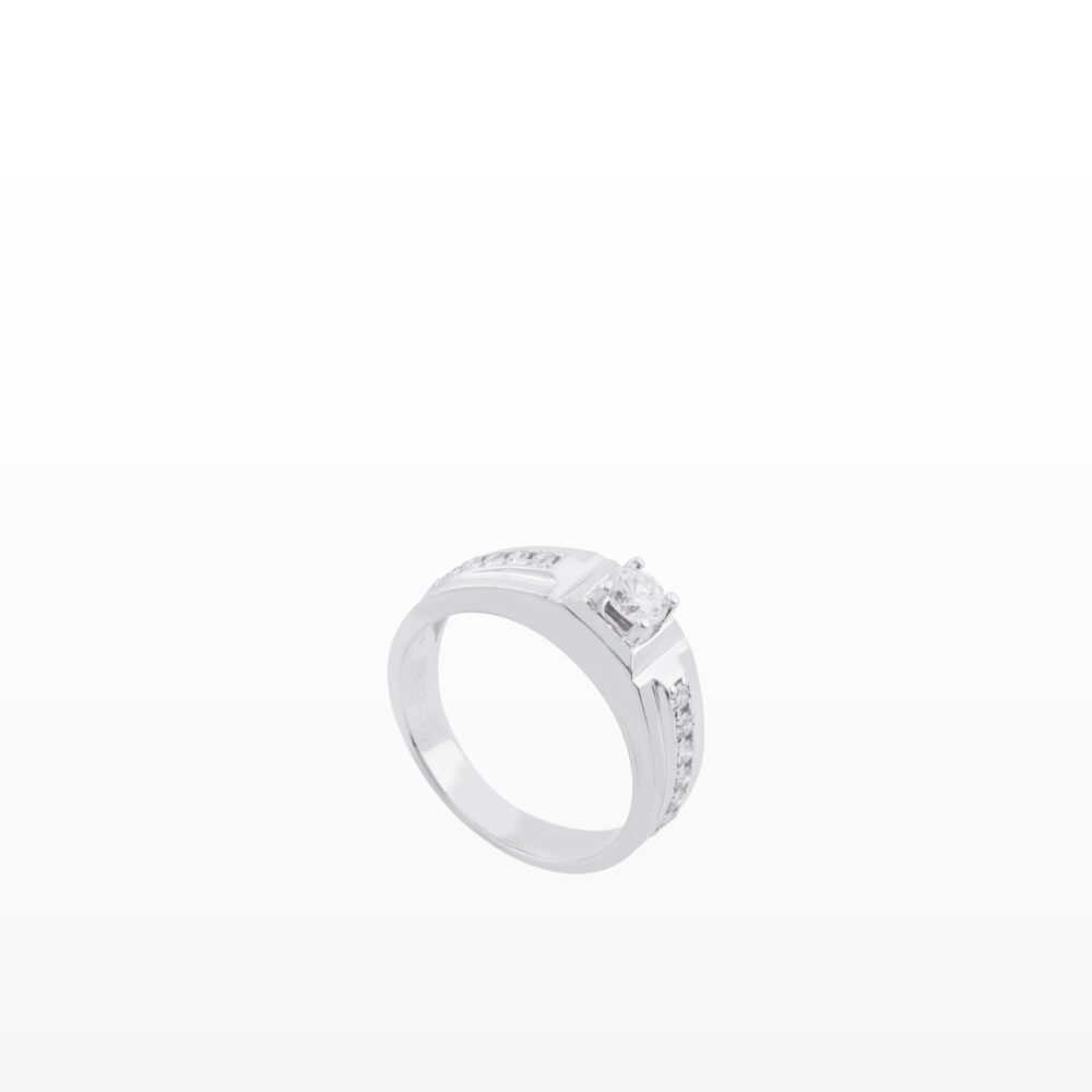 Thiết kế nhẫn nam với phom dáng vững chãi, đường cắt gọn gàng và điểm nhấn viên kim cương sáng ở trung tâm – như biểu tượng cho sự kiên định và giá trị cốt lõi của người đàn ông. Những chi tiết tấm dọc thân nhẫn được sắp xếp tinh tế, thể hiện sự cân bằng giữa mạnh mẽ và tinh tế.