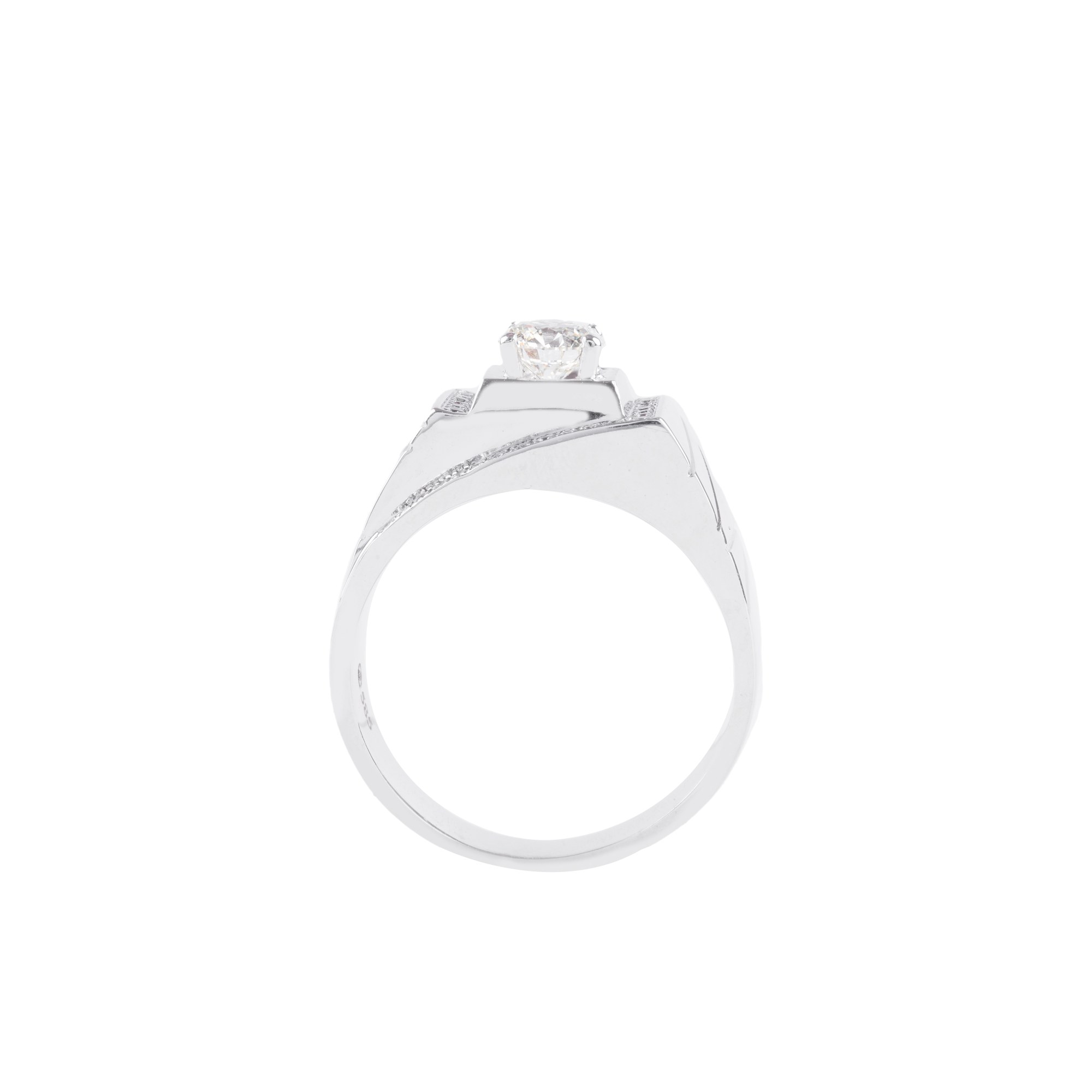 Thiết kế nhẫn nam với phom dáng bản lớn, mạnh mẽ, kết hợp viên kim cương trung tâm dáng vuông tạo nên tổng thể vững chắc và đầy uy lực. Các đường nét cắt gọn gàng, dứt khoát mang đến cảm giác hiện đại, nam tính nhưng vẫn giữ được sự tinh tế trong từng chi tiết.