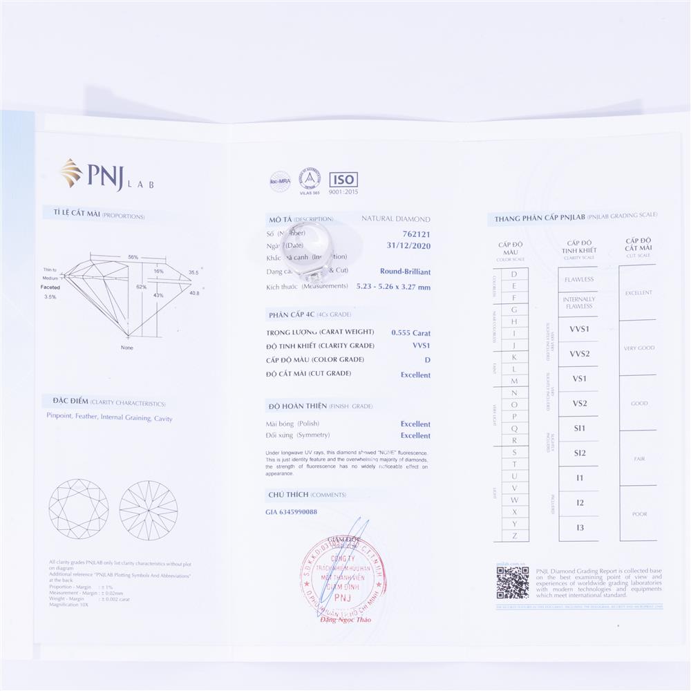 | Kim cương viên: | 5.23 - 5.26 LY D/VVS1 |