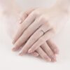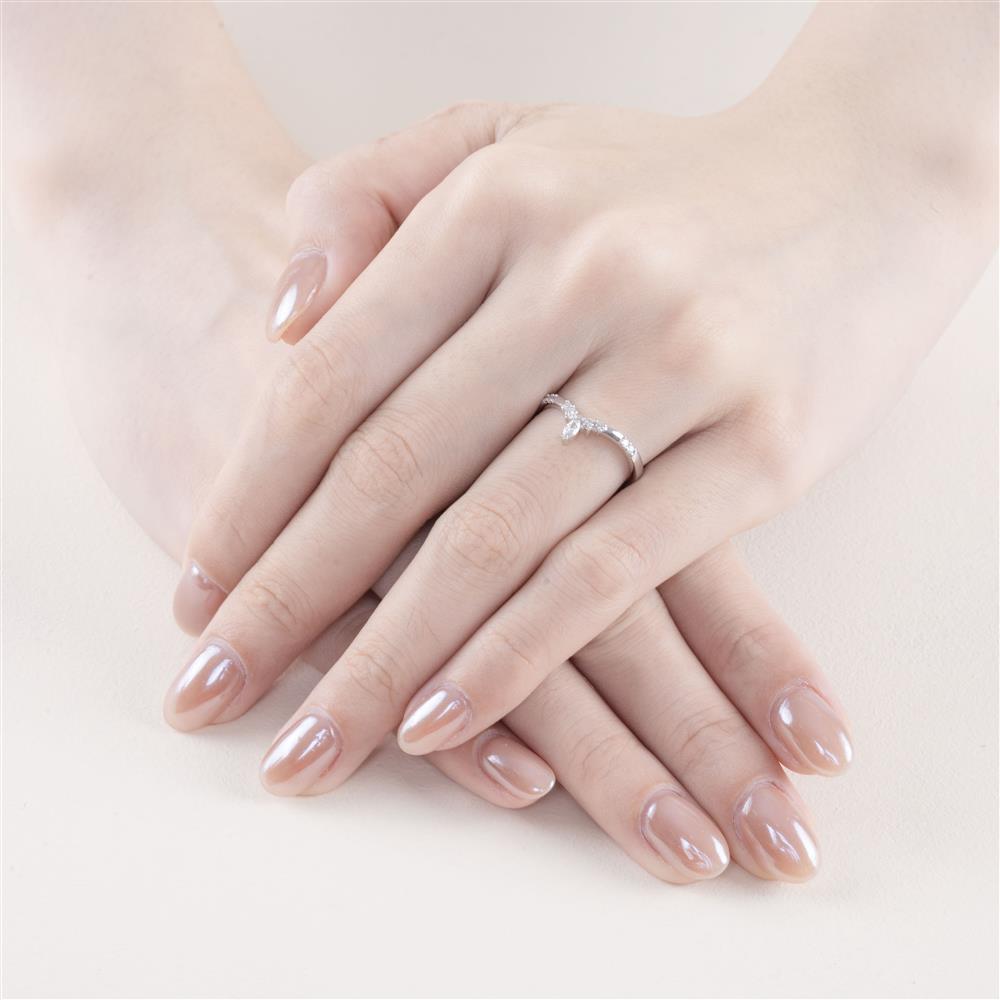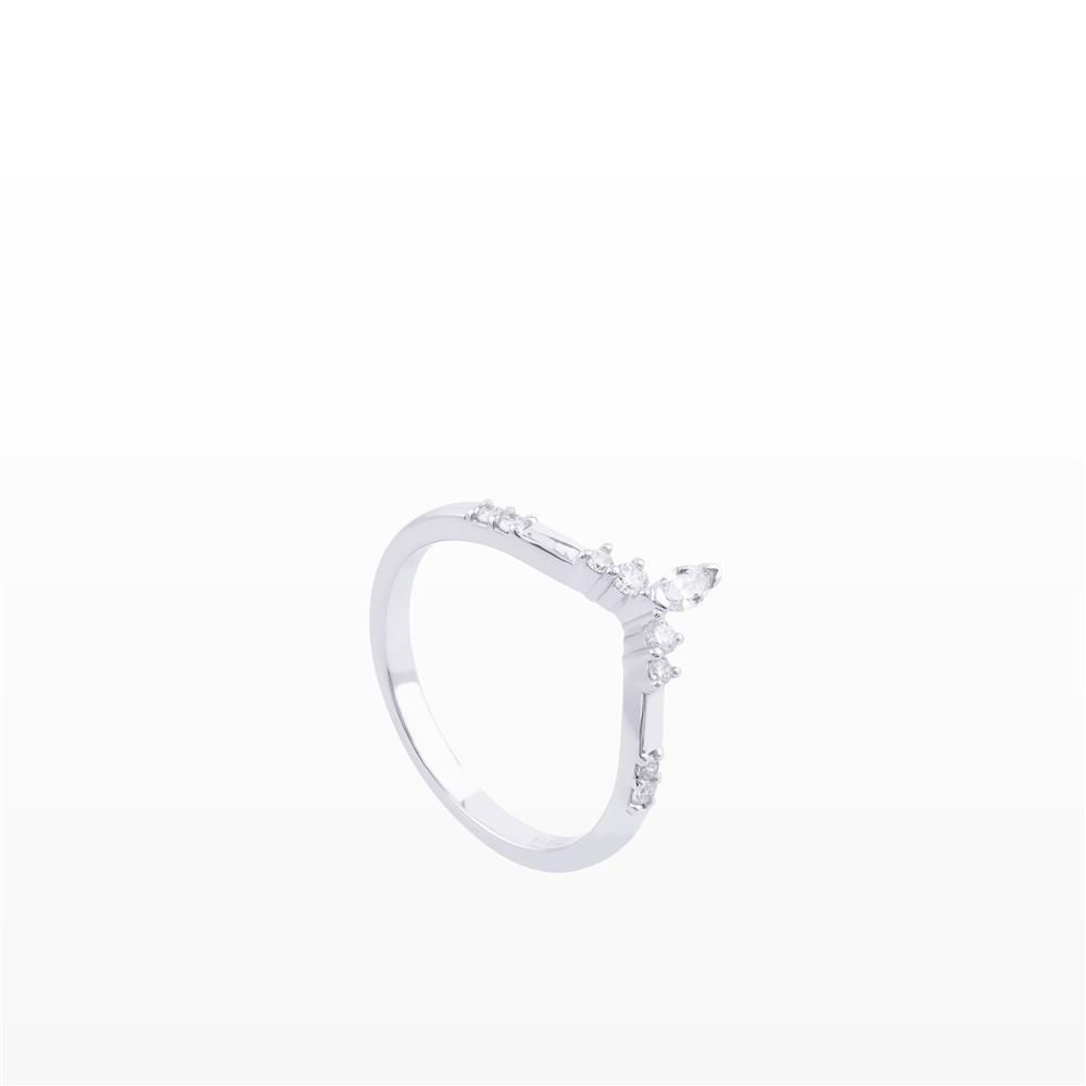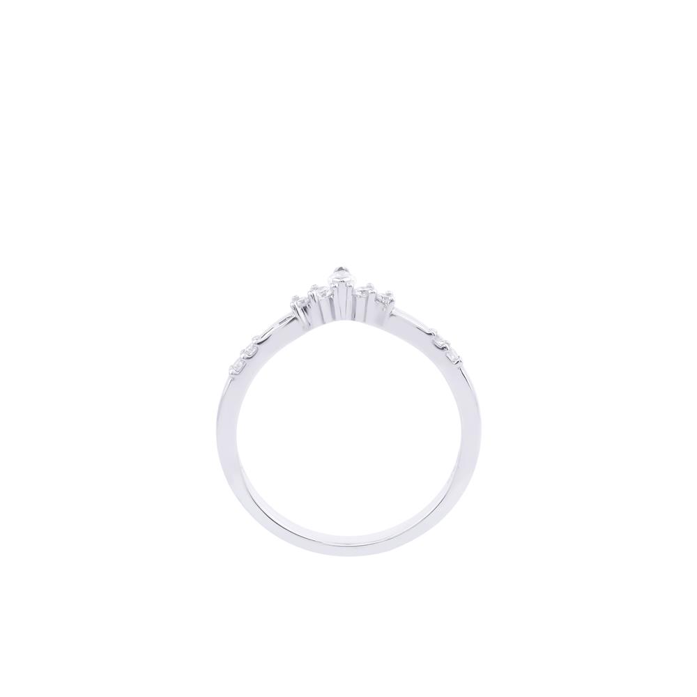 Thiết kế dáng chữ V tinh tế tôn trọn đường cong ngón tay, với viên kim cương cắt Marquise ở đỉnh như ánh sáng dẫn lối, lan tỏa qua từng viên kim cương tấm hai bên.