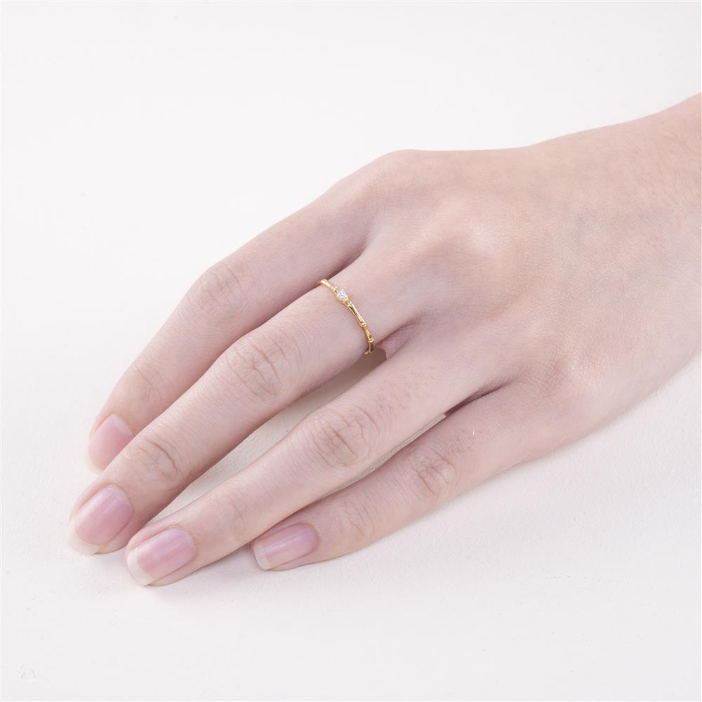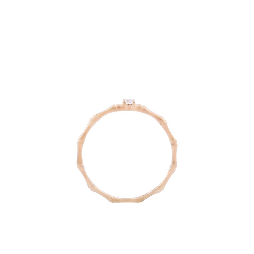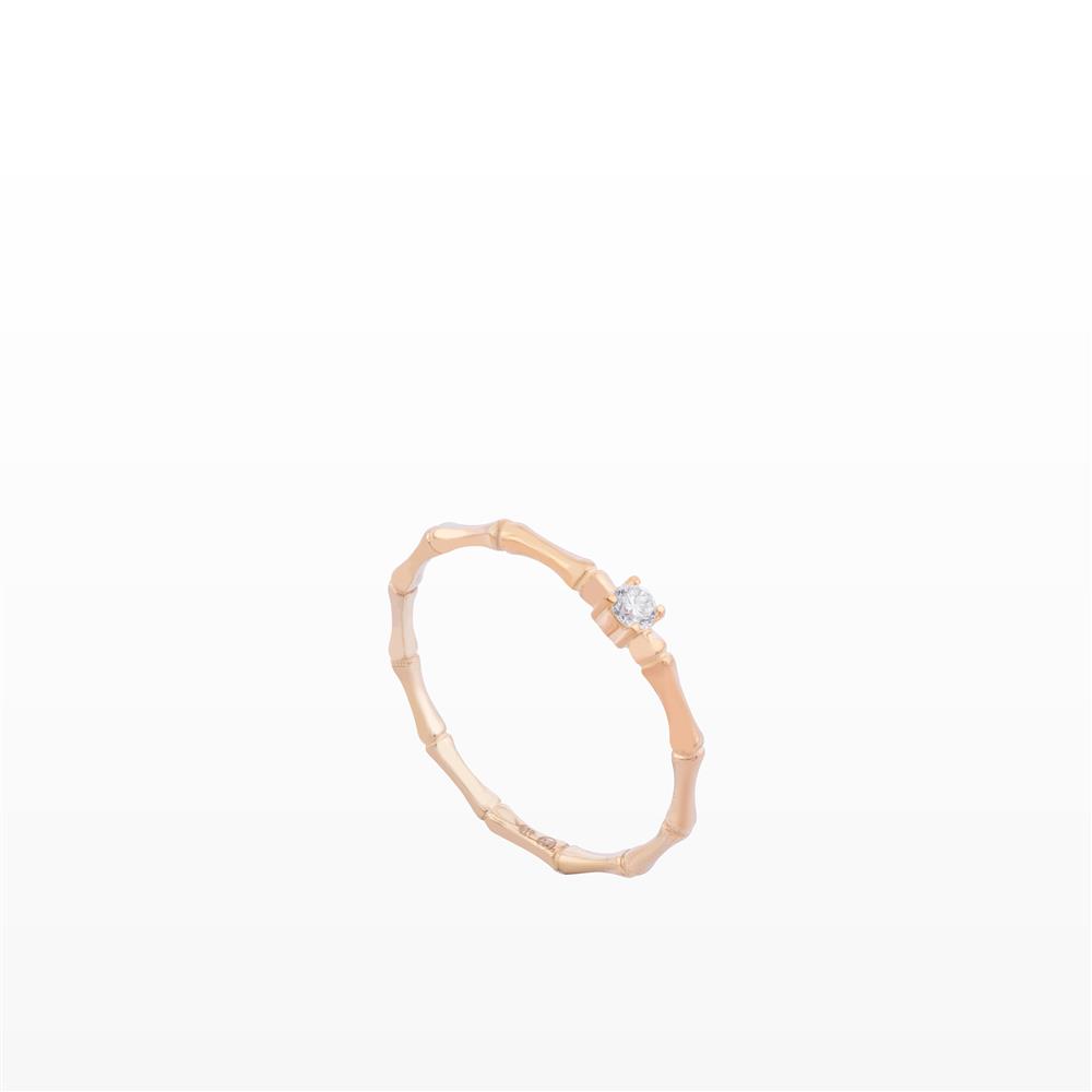Chiếc nhẫn mang thiết kế mô phỏng đốt tre – biểu tượng của sự mạnh mẽ, kiên cường và may mắn trong văn hóa Á Đông. Điểm nhấn của thiết kế là viên kim cương sáng trong được đặt ở vị trí trung tâm, nổi bật mà vẫn hài hòa. Ánh sáng từ viên kim cương phản chiếu trên từng đốt tre, mang đến vẻ đẹp thanh tao nhưng cuốn hút – một sự kết hợp giữa tự nhiên và tinh tế hiện đại.