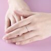 Thiết kế vòng nhẫn mảnh với bề mặt được xử lý thành từng đốt mềm mại, như những nhịp chạm liên tiếp của thời gian. Ở trung tâm, cụm kim cương nhỏ lấp lánh khẽ nâng niu ánh sáng, không phô trương nhưng đủ để trở thành điểm tựa tinh khôi cho toàn bộ thiết kế. Sự đối lập giữa nét thô mộc có chủ ý của thân nhẫn và ánh sáng tinh tế của kim cương tạo nên vẻ đẹp vừa hiện đại, vừa sâu lắng.
