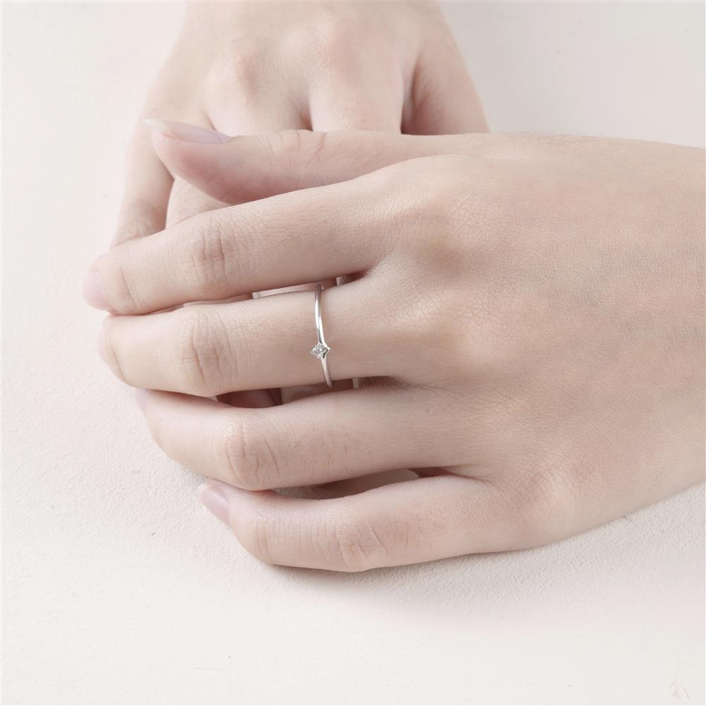 Sắc trắng thanh khiết tôn lên ánh sáng trong trẻo của kim cương, tạo nên tổng thể hiện đại, tinh giản nhưng đầy chiều sâu. Không phô trương, không cầu kỳ, mẫu nhẫn này chinh phục bằng sự tĩnh lặng và tinh tế—như một lời thì thầm dịu dàng dành cho những cảm xúc bền bỉ.