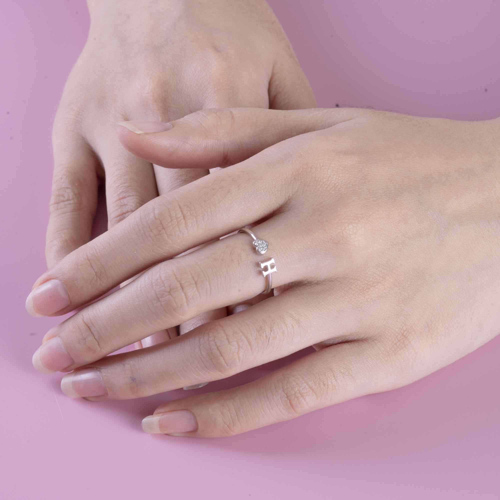 Thiết kế nhẫn tinh xảo kết hợp chữ H cá nhân hóa và trái tim kim cương lấp lánh, tạo nên biểu tượng đầy cảm xúc về tình yêu, sự gắn kết và những kỷ niệm không thể thay thế. Chữ H có thể đại diện cho Her – Heart – Harmony, hay đơn giản là chữ cái gắn liền với tên của người bạn yêu thương nhất.